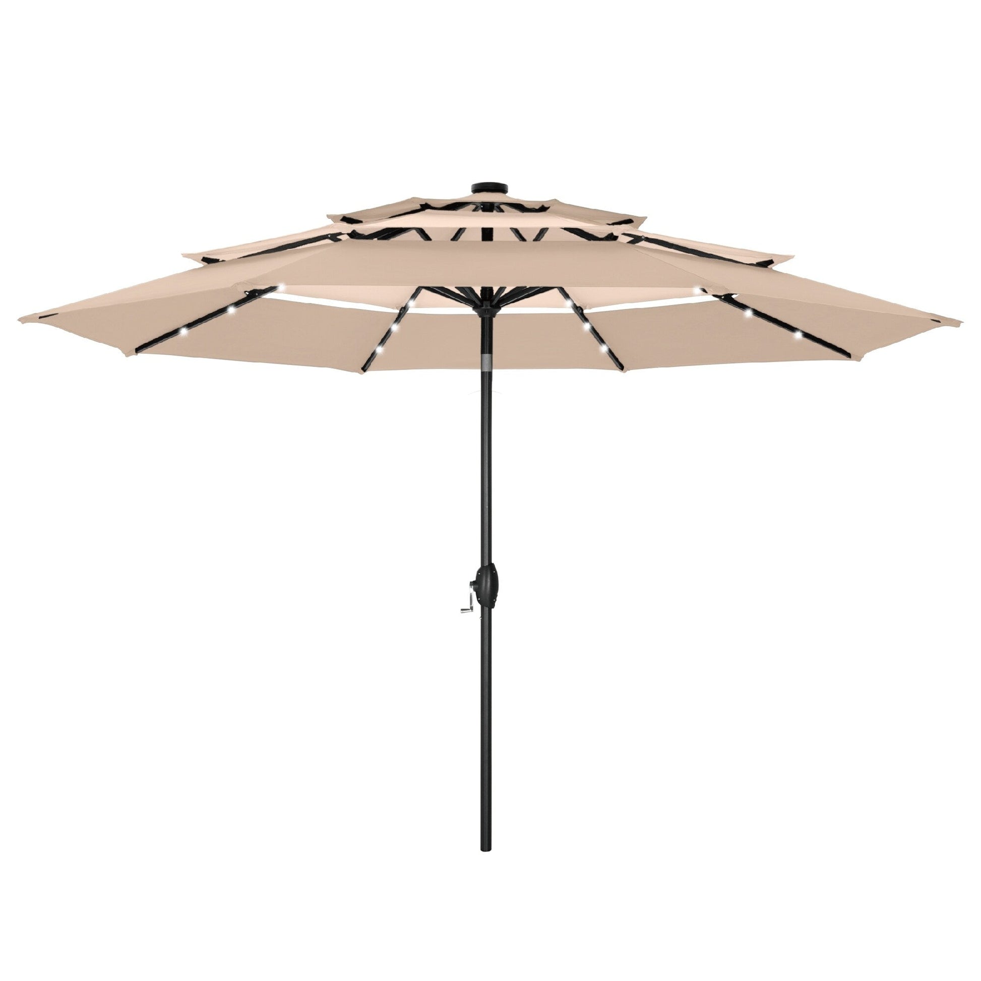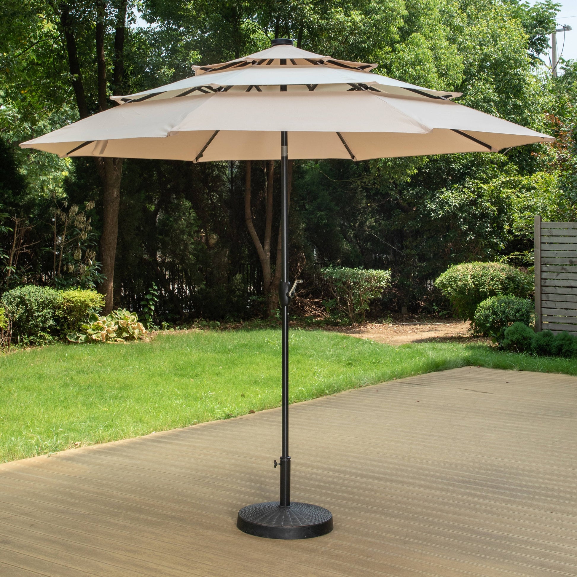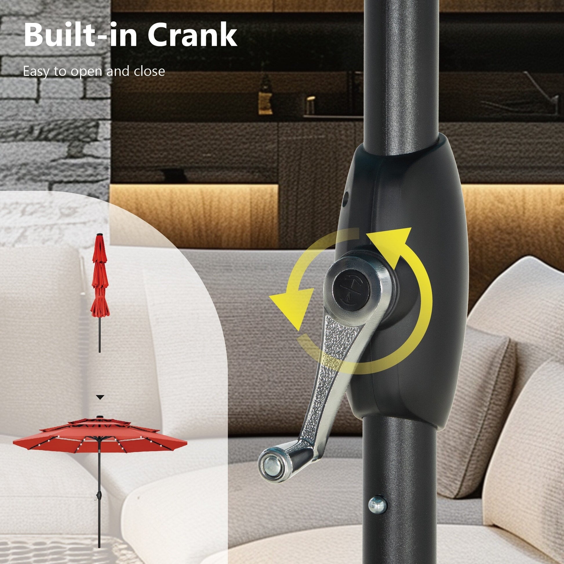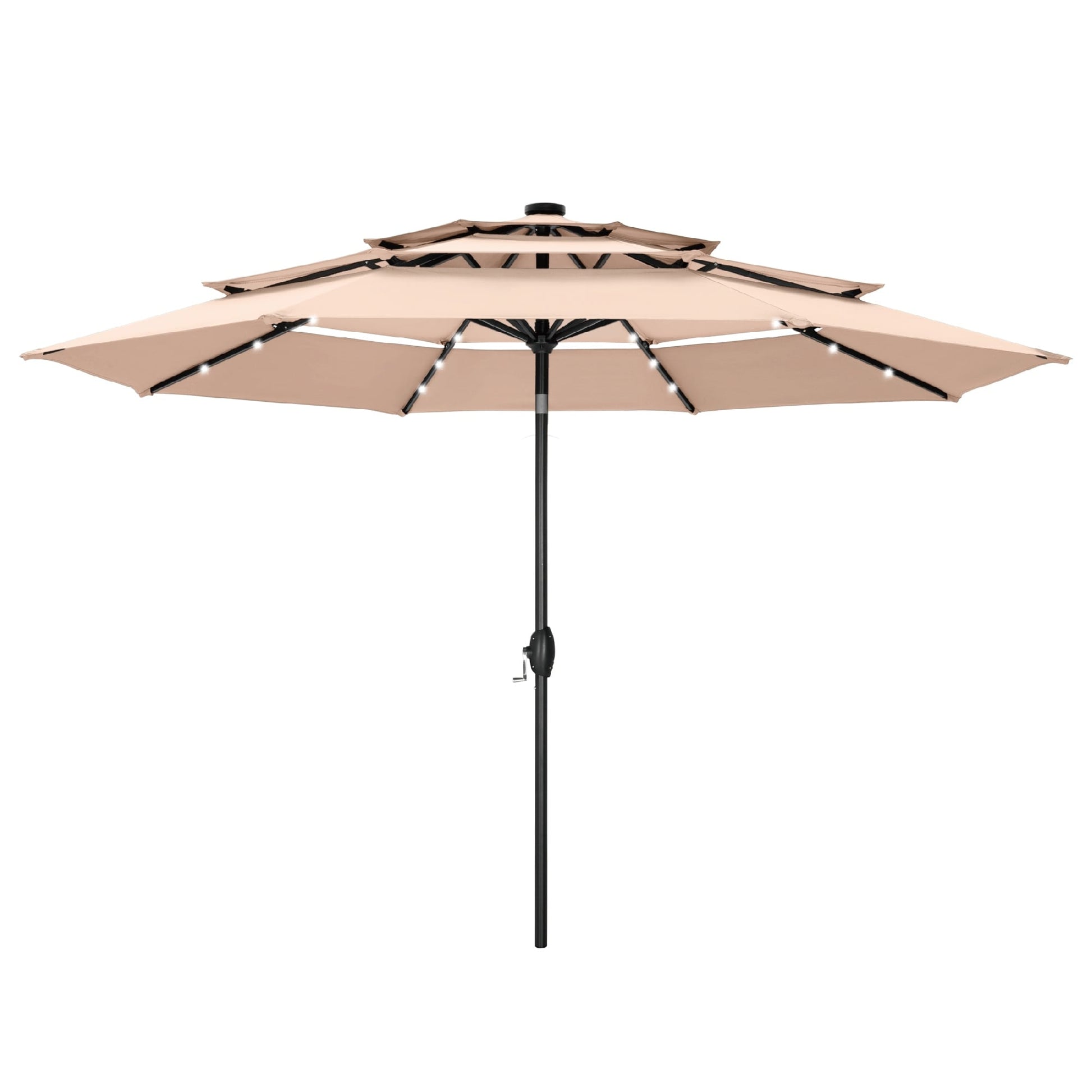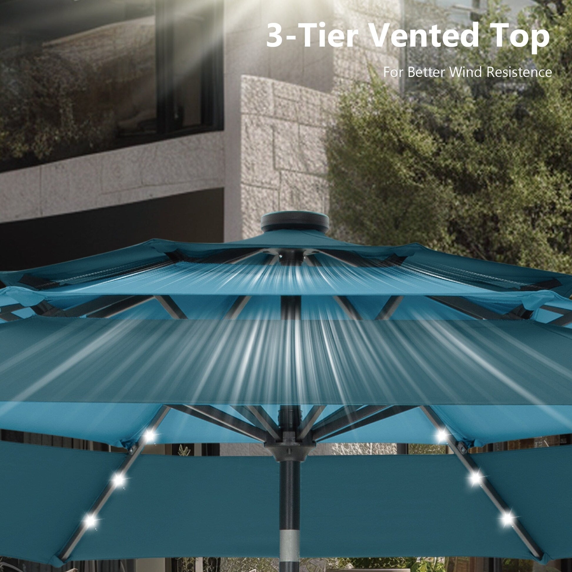 MAISON ARTS 10ft 3 Tier Auto-tilt Patio Umbrella Outdoor Double Vented Umbrella with LED Lights