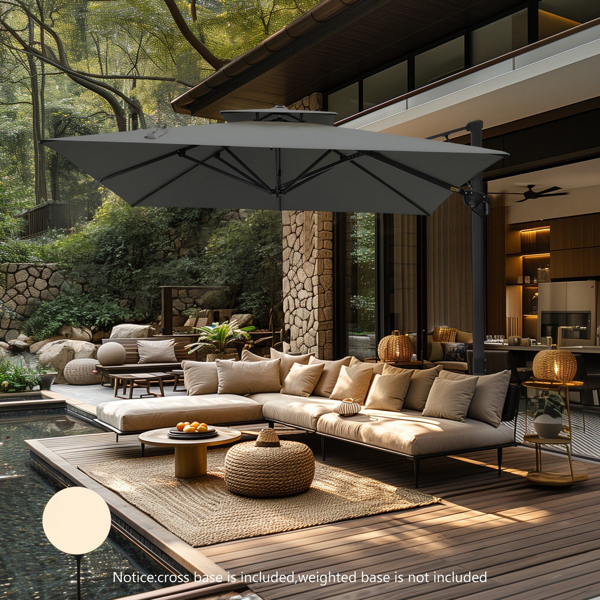MAISON ARTS 12 FT Automatic Hydraulic Cantilever Umbrella Aluminum Pole 360 Degree Rotation
