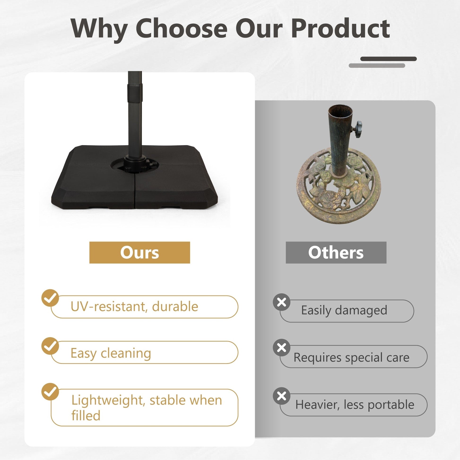 - Please Note all umbrellas include a cross base, and you can choose whether to purchase it with a weighted base or not.