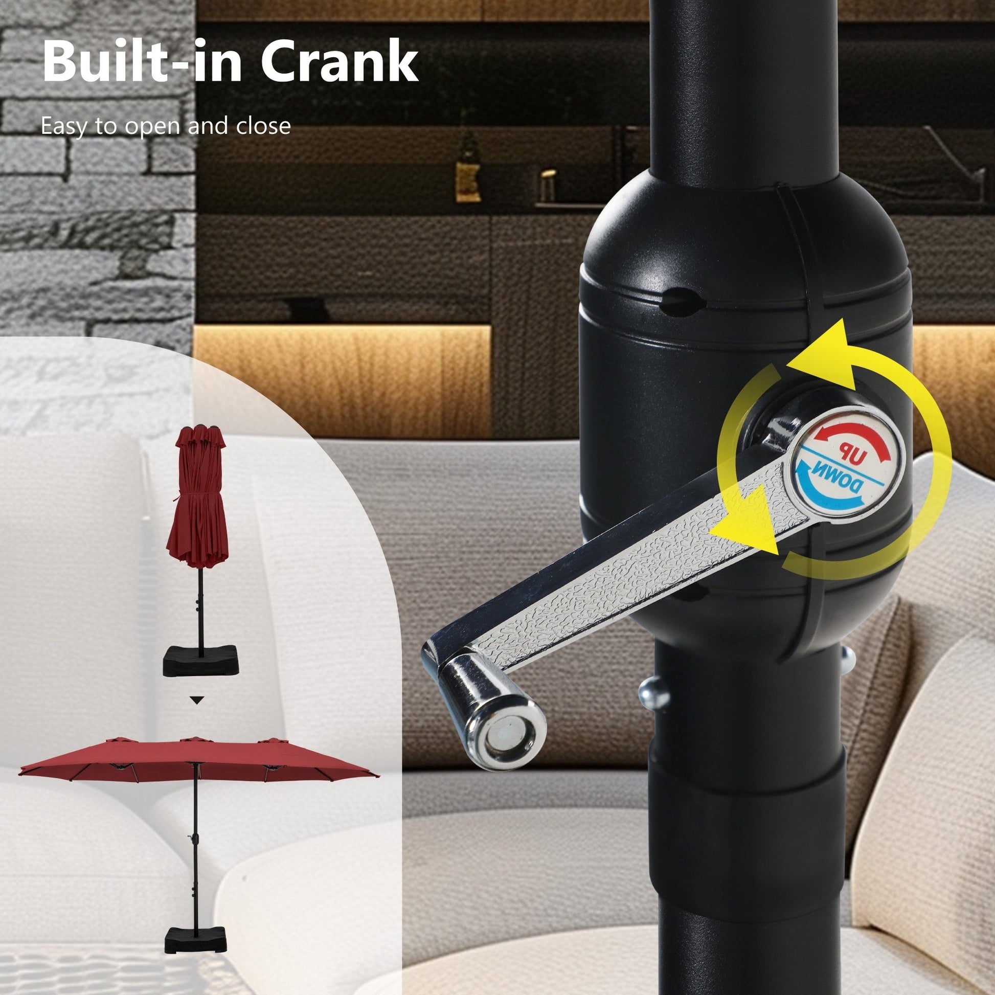 MAISON ARTS 15ft Double-Sided Patio Extra Large Twin Umbrella with Base Included