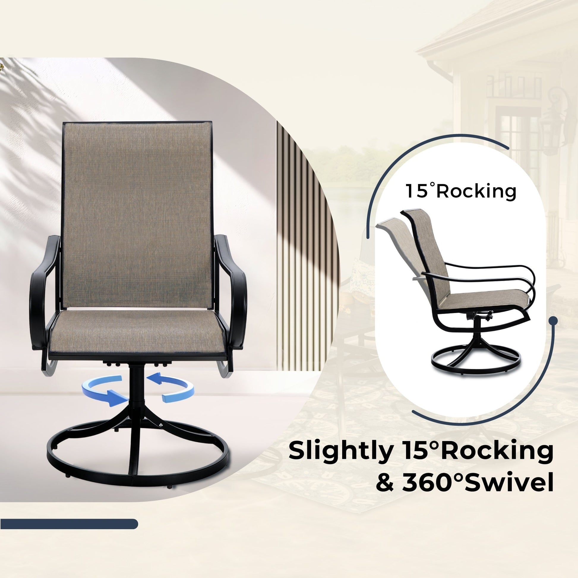 - 6 swivel armchairs with Textilene mesh fabric and a slightly rocking, ergonomic design for added comfort