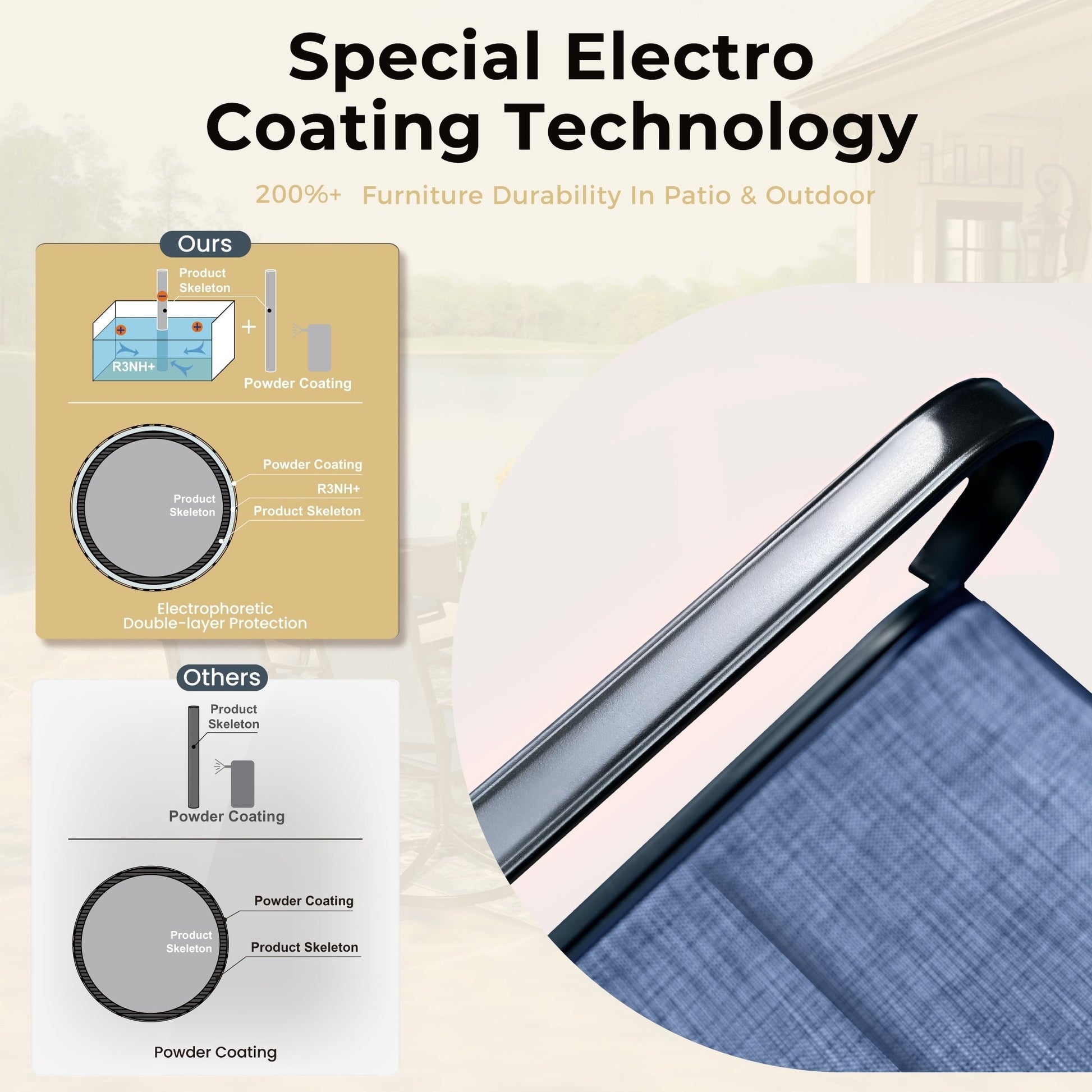 - Reinforced integral steel rectangular table with anti-rust coating and a 1.57' umbrella hole