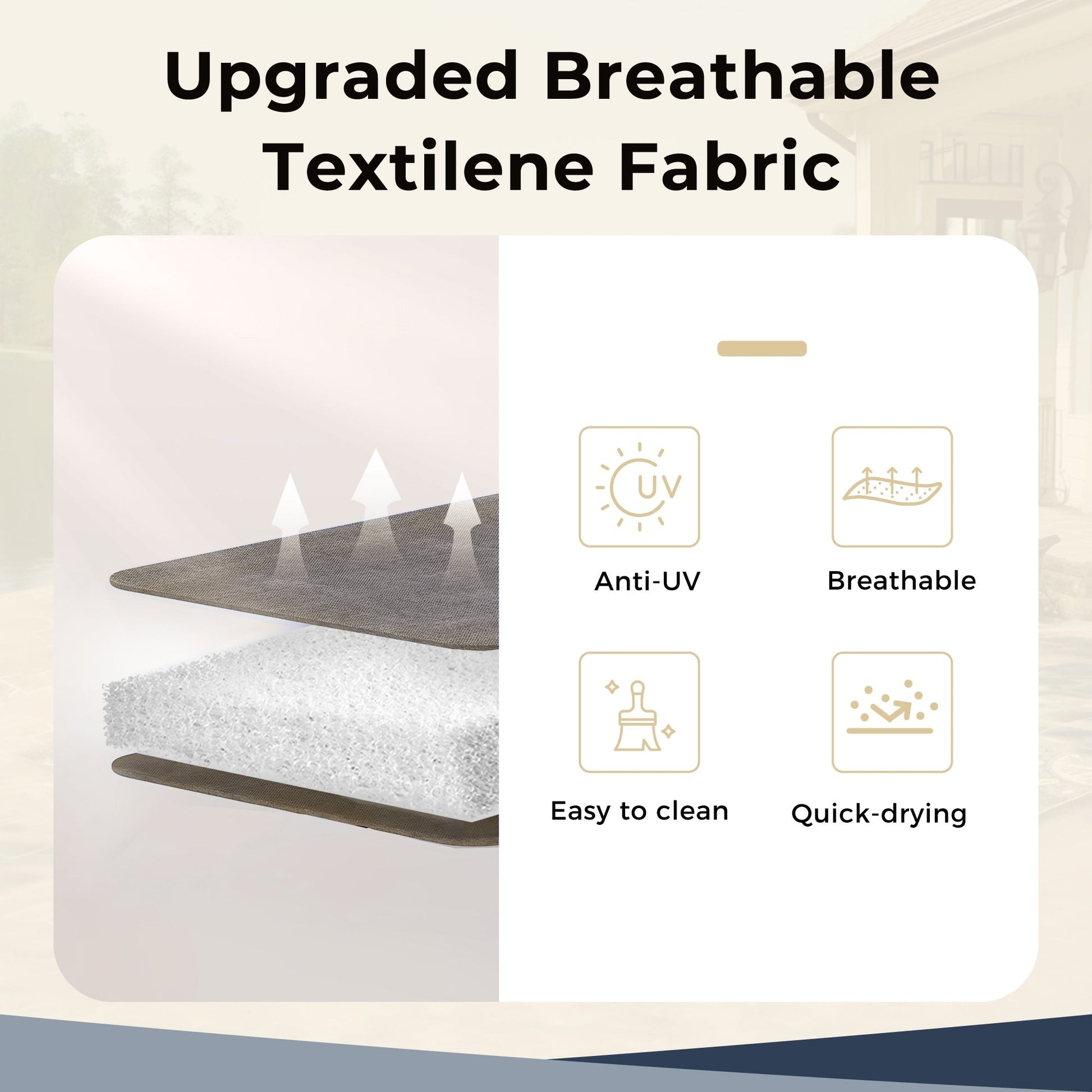 Elevate your outdoor gatherings with this 8-piece patio dining set that boasts a modern look and easy-to-clean design. The rectangular table and 6 swivel armchairs feature thick Textilene material and a powder-coated steel frame for a durable and comfortable seating experience. A 13ft double-sided patio umbrella completes the package, making this set perfect for gardens, porches, and yards.