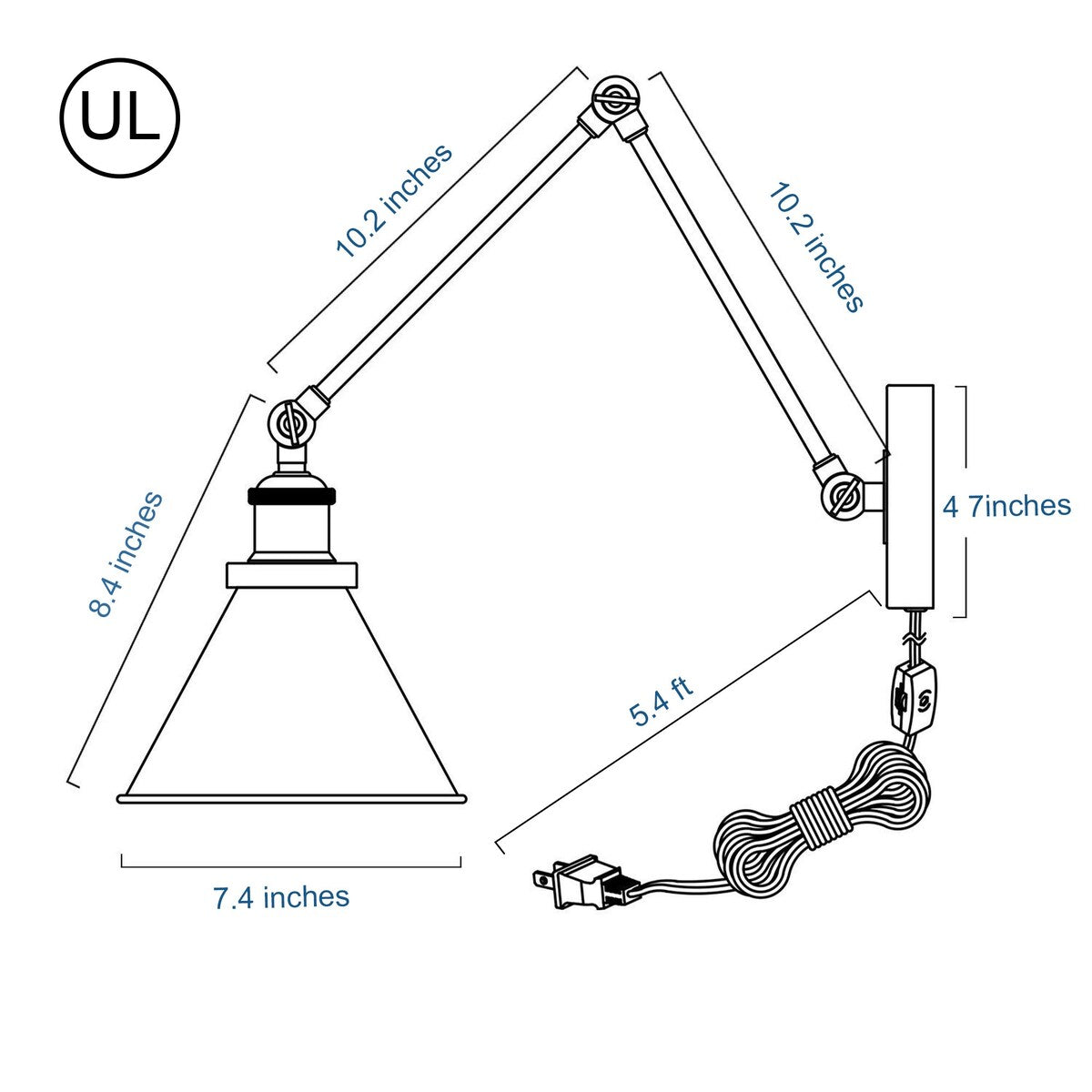 Malryn Set of 2 Modern Adjustable Swing Arm Lights Plug-in/Hardwired Wall Sconces