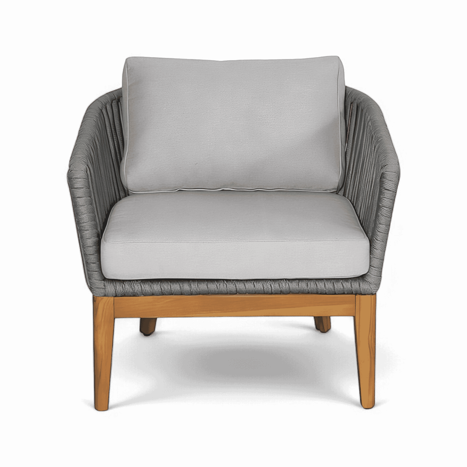 Enhance your outdoor living space with our Maui Outdoor Armchair in light gray. The perfect blend of contemporary design and organic materials, this elegant, understated piece is as comfortable as it is eye-catching.