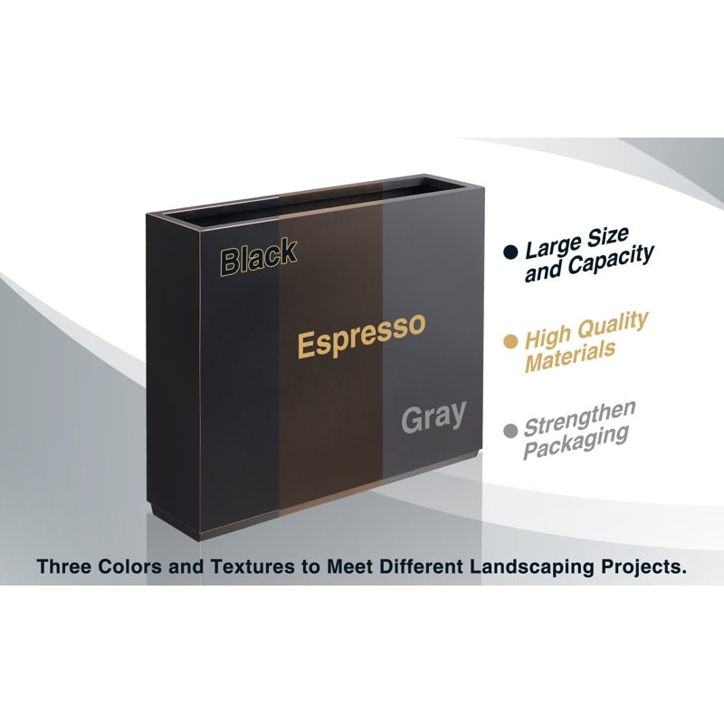 Whether it’s your room, your patio, or the lackluster entrance wall of your home, this metallic series indoor/outdoor box planter—with its perfect balance of design, durability, and convenience—features a low modern design that is the perfect fit for elevating your outdoor decor or residential and commercial settings to a whole new level. It is crafted from full seam welded, thick gauge powder-coated galvanized steel with a furniture-quality finish, which gives the planter its flexible, impact, crack, and scratch-resistant qualities. To top it off, it is equipped with an optional drainage hole to drive out excess water easily.