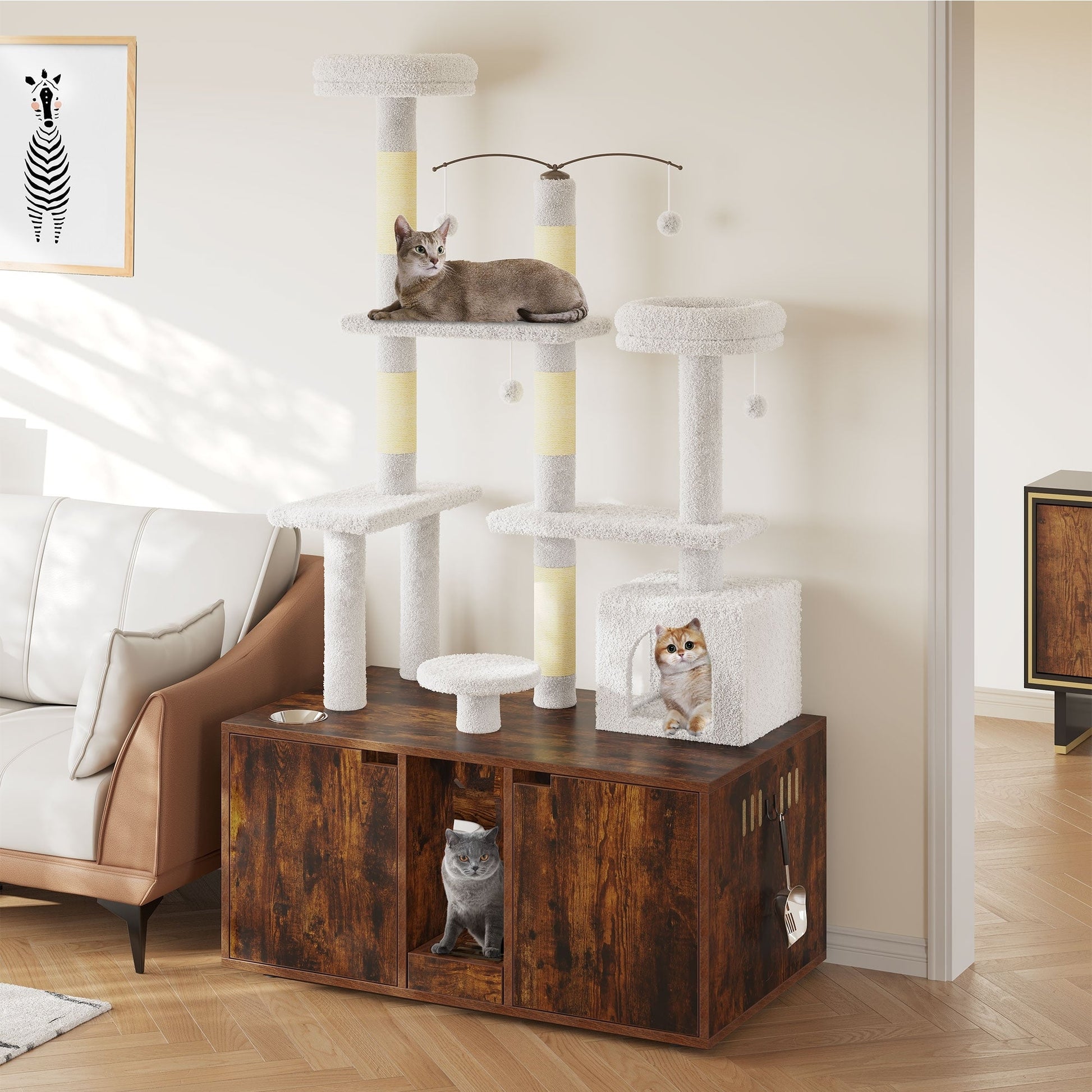 Moasis Double Cat Litter Box Enclosure with Scratching Post Cat Tree