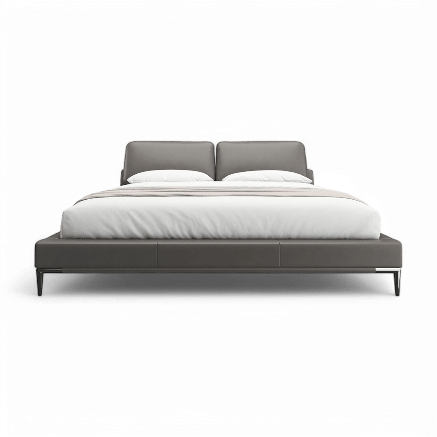 Upgrade to a style that is elegant and refined with the Movido Bed in Gray. Offering straight clean lines, gray leatherette upholstery, and polished chrome legs, this piece exudes class while providing comfort. The dual adjustable headboard allows for custom support and adds a striking design element. The frame is comprised of wooden slats for stability. Also available in white.