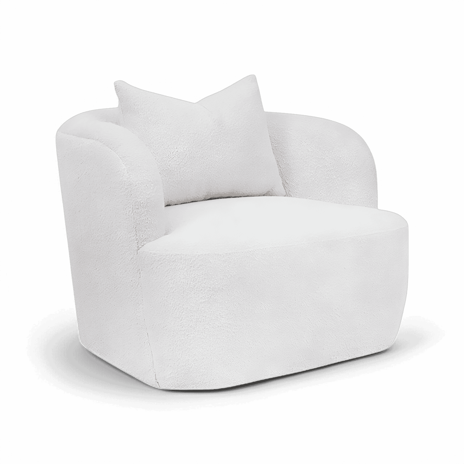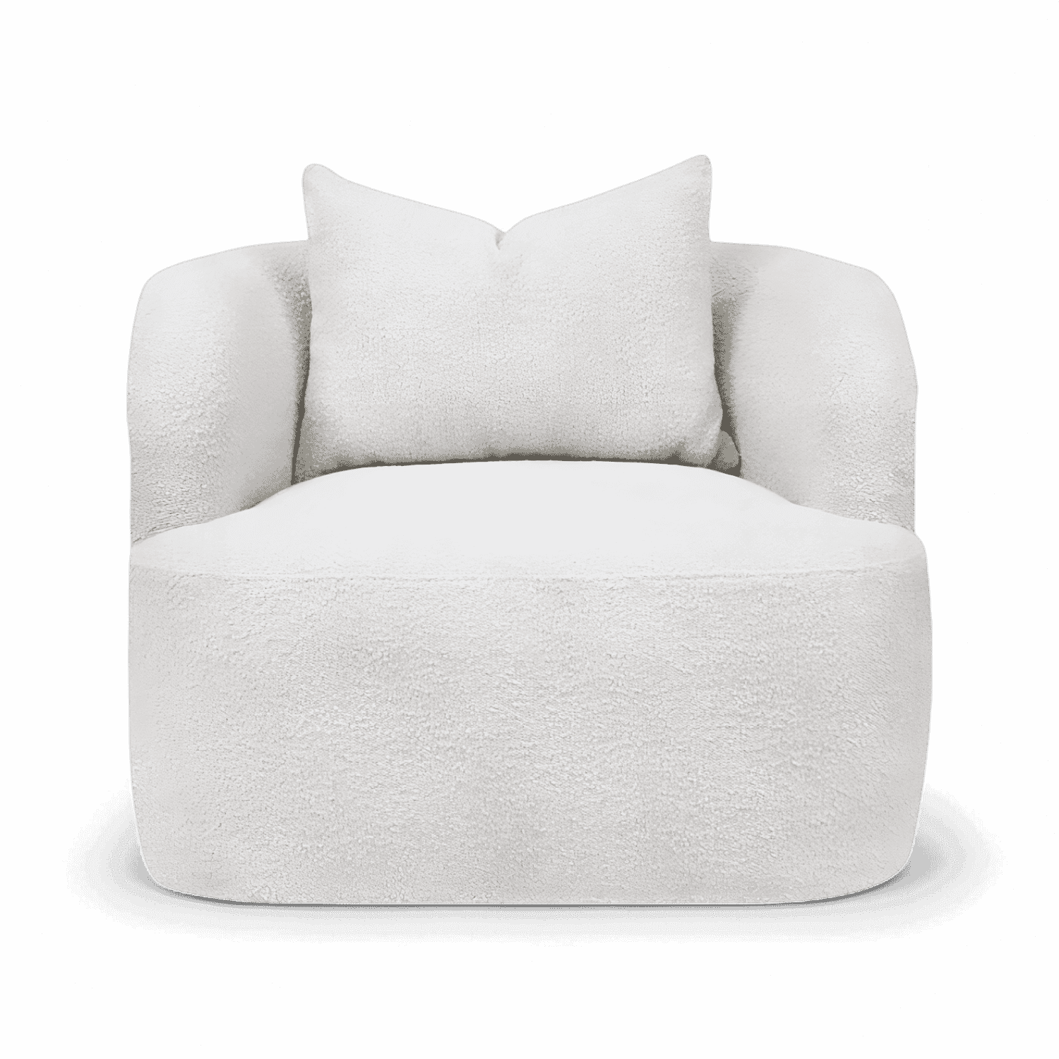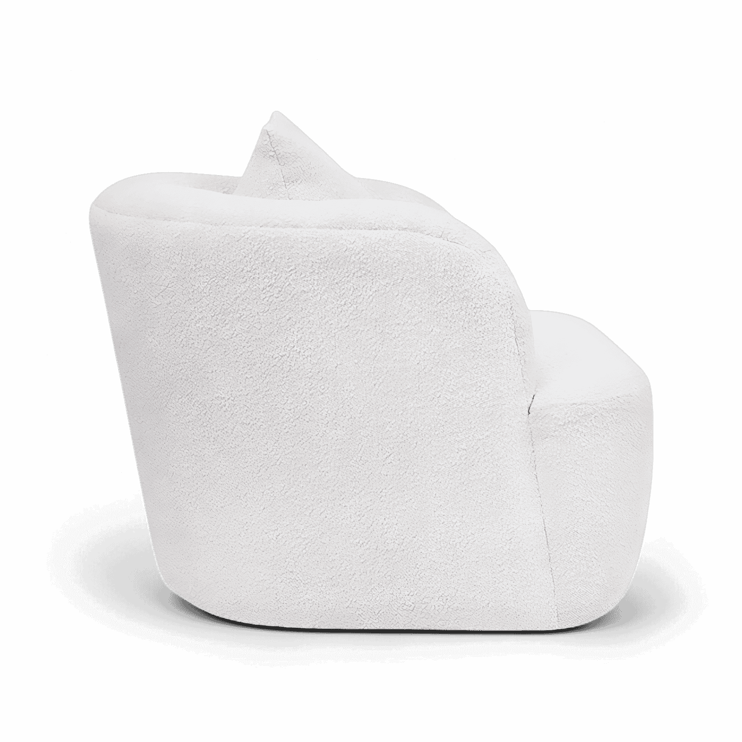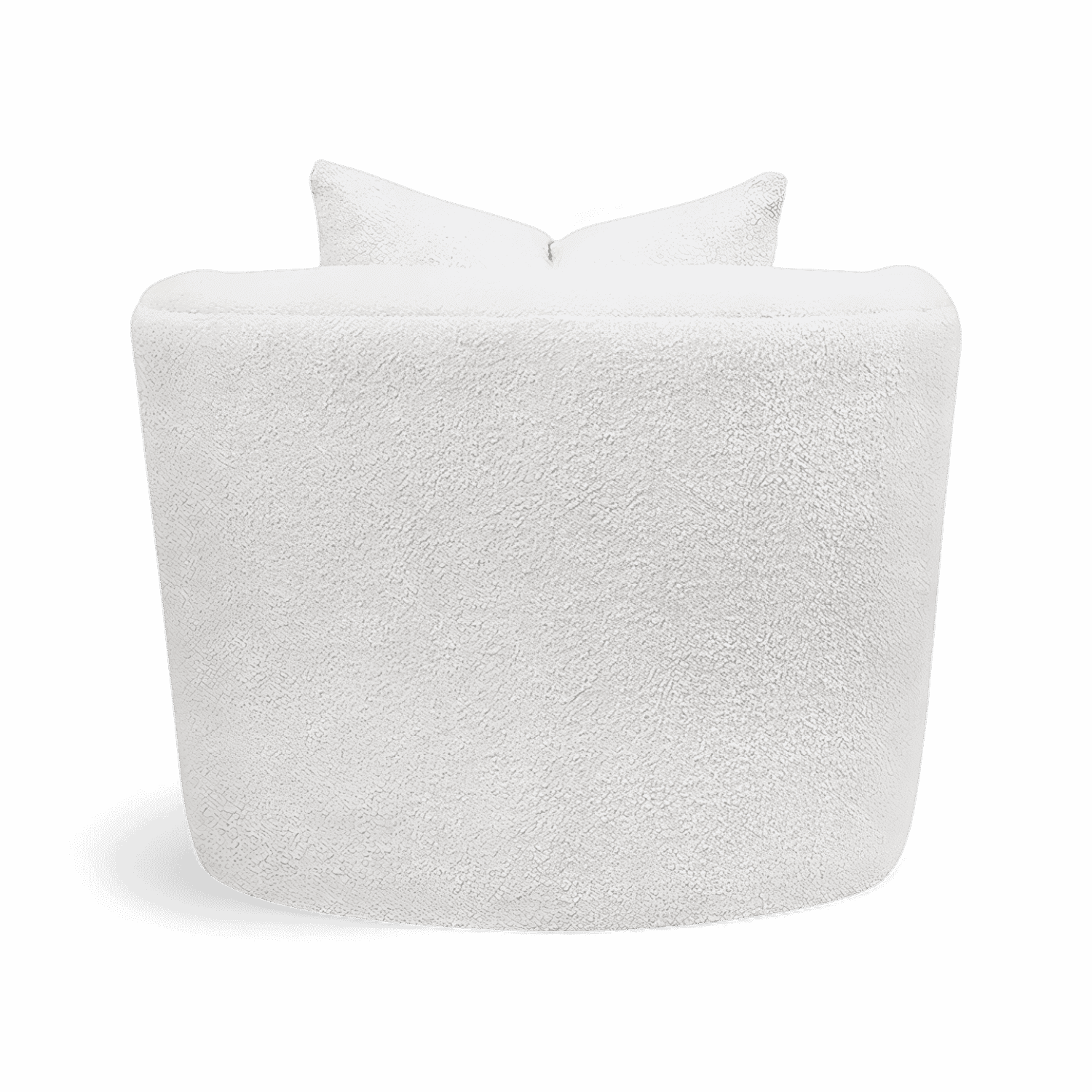 360 Swivel | One Pillow Included | Weight Capacity: 300 lbs. | Upholstery Material: 100% Polyester Boucle Fabric | Inner Frame: Pine Wood and Plywood | Padding Material: Foam