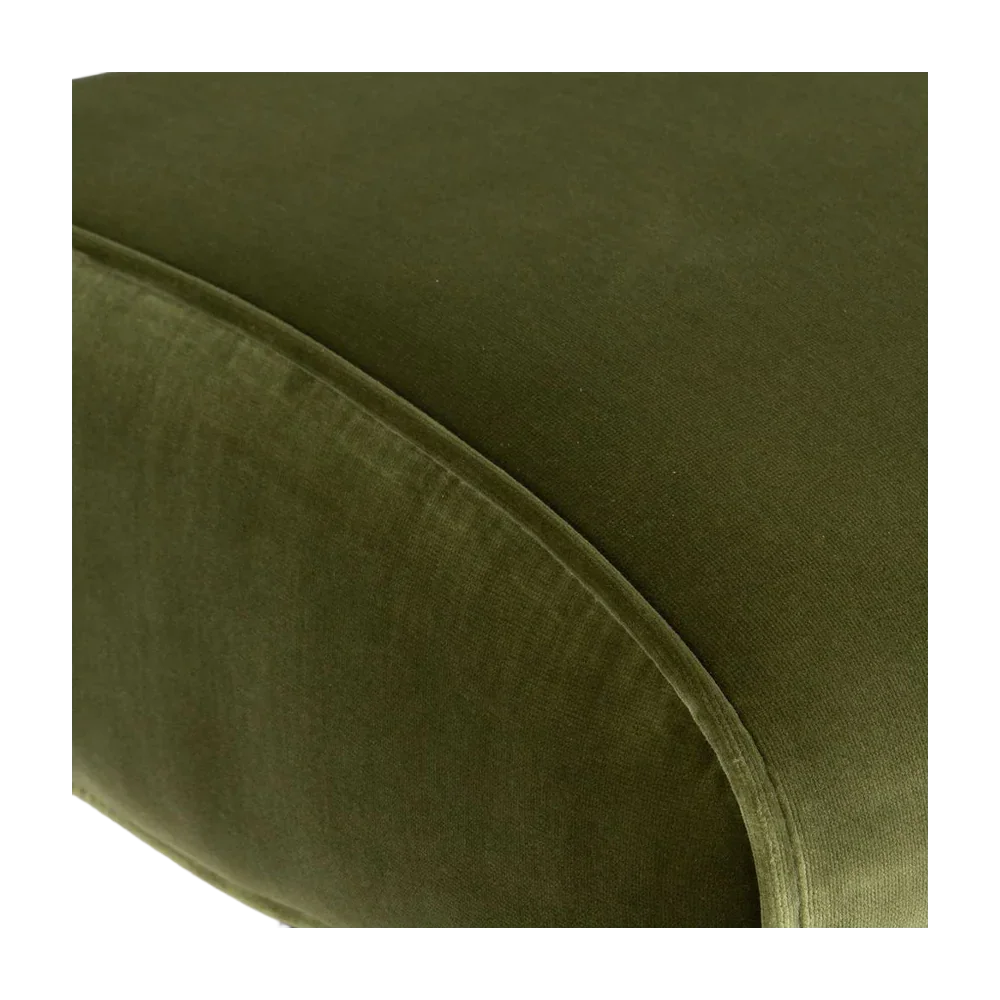 The Olivia Accent Chair is the perfect blend of modern design and luxurious comfort, making it a standout addition to any contemporary living space. This chic chair features a plush, deep green velvet upholstery that exudes richness and sophistication, enveloping you in a soft, tactile embrace. The chair's sleek, curved backrest and cushioned seat are framed by a minimalist gold-toned metal structure, adding a touch of structural elegance that enhances its mid-century modern inspiration. The combination of the lush velvet and gleaming metal finish makes the Olivia Accent Chair an ideal choice for those seeking to infuse their space with bold color, luxurious texture, and a touch of timeless glamour.