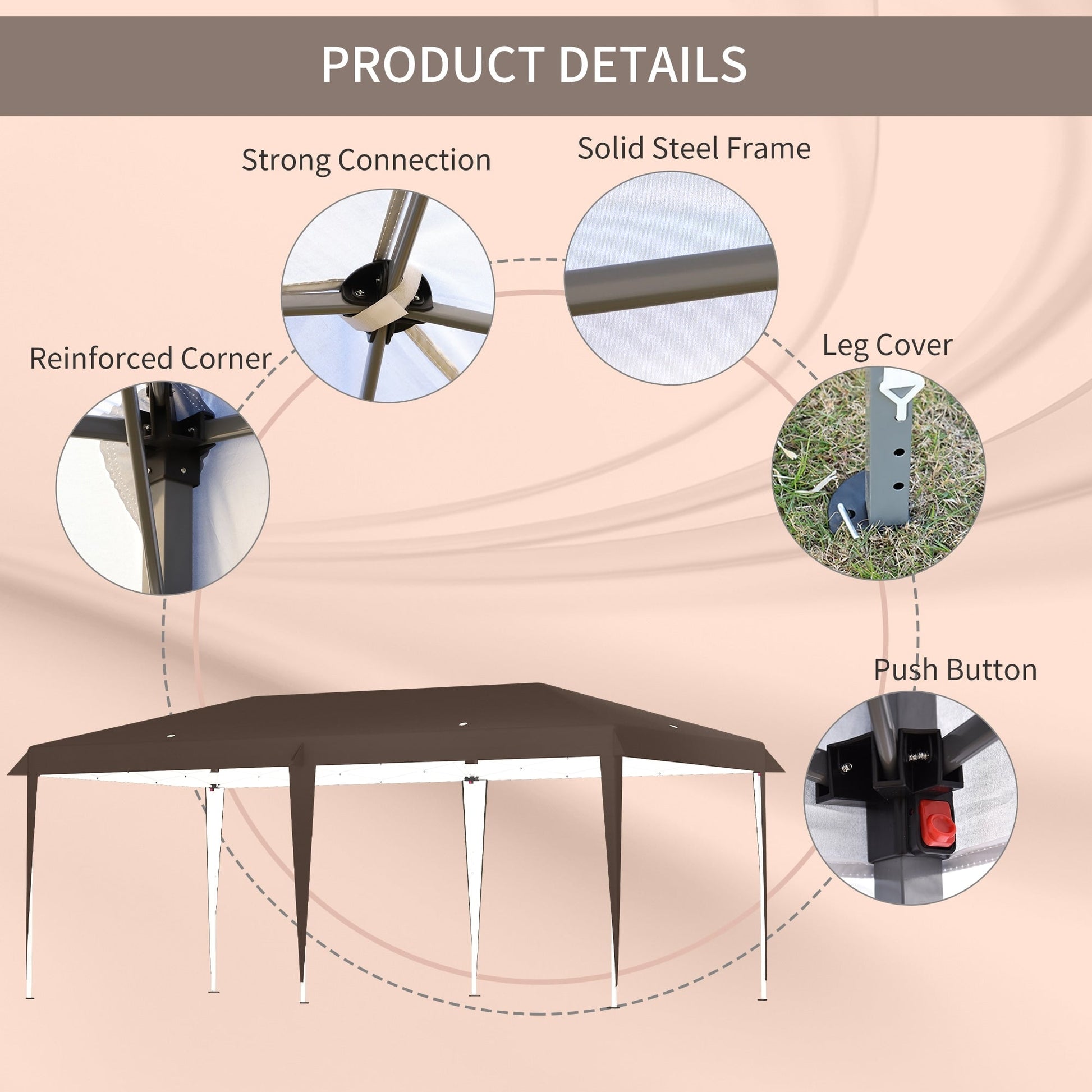 - Extra-large outdoor pop-up party tent offers shade outside