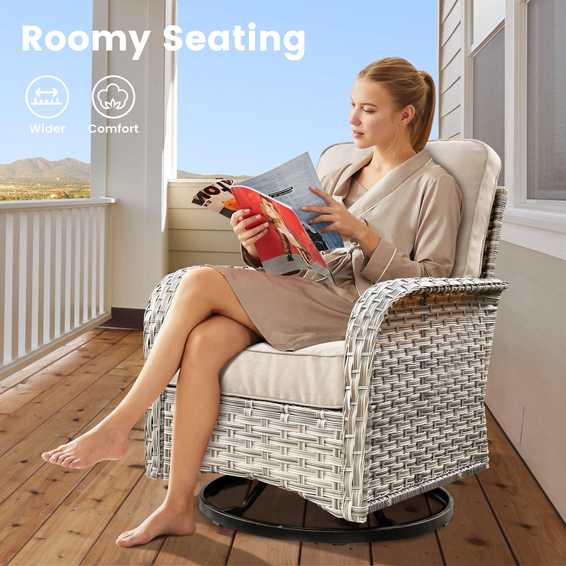 OVIOS 9 Pieces Outdoor Wicker Swivel Chair Set With Fire Table