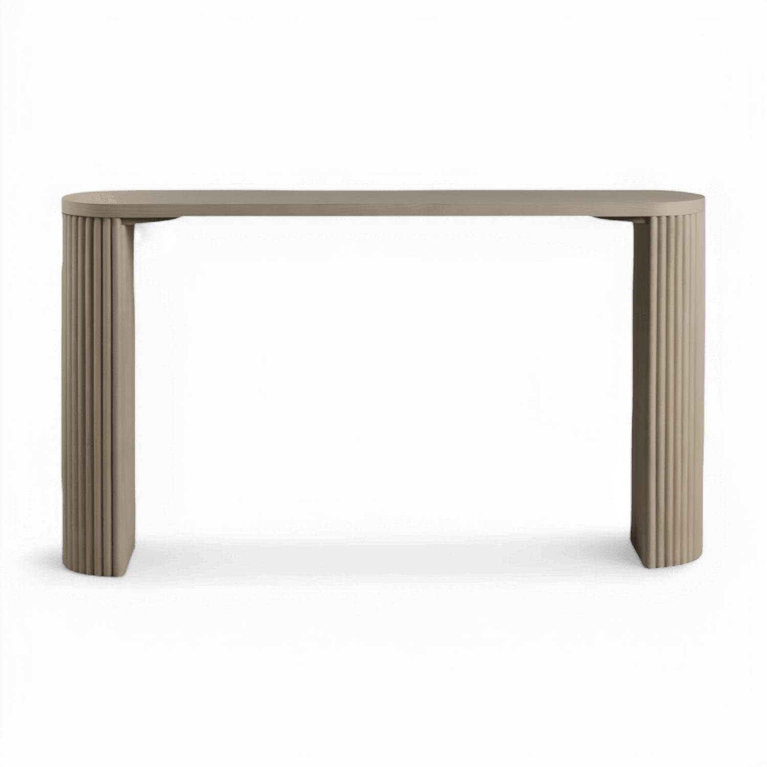 The Oxford Console in Greige Oak is a stunning blend of contemporary elegance and unique craftsmanship. Crafted with a top finish of greige oak veneer, this piece captures the essence of contemporary design with an organic touch. The greige oak wood, featuring subtle gray-beige tones and a fine grain pattern, enhances its sleek aesthetic while maintaining a warm, natural feel.