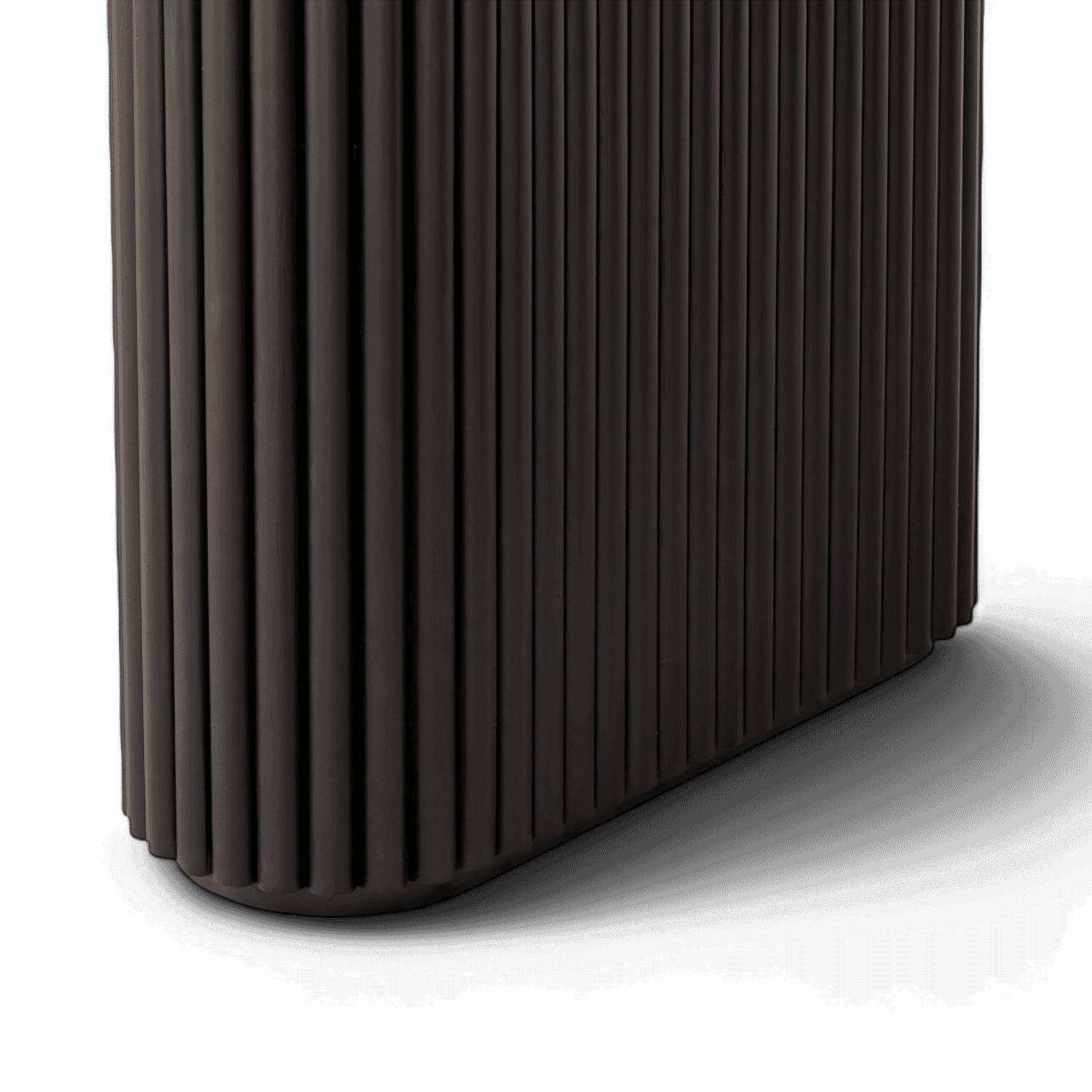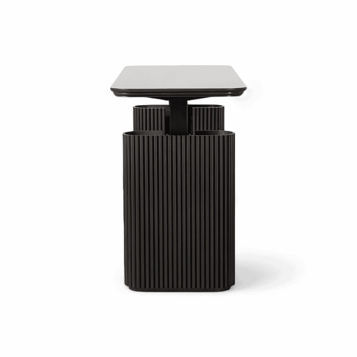 The desk’s gracefully curved legs, adorned with a striking vertical wood slat design, adds texture and visual interest. A blend of style and practicality, the Oxford Desk Black Wood is designed to enhance productivity while making a bold design statement.