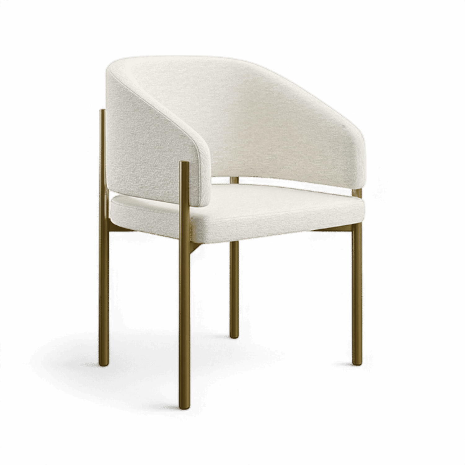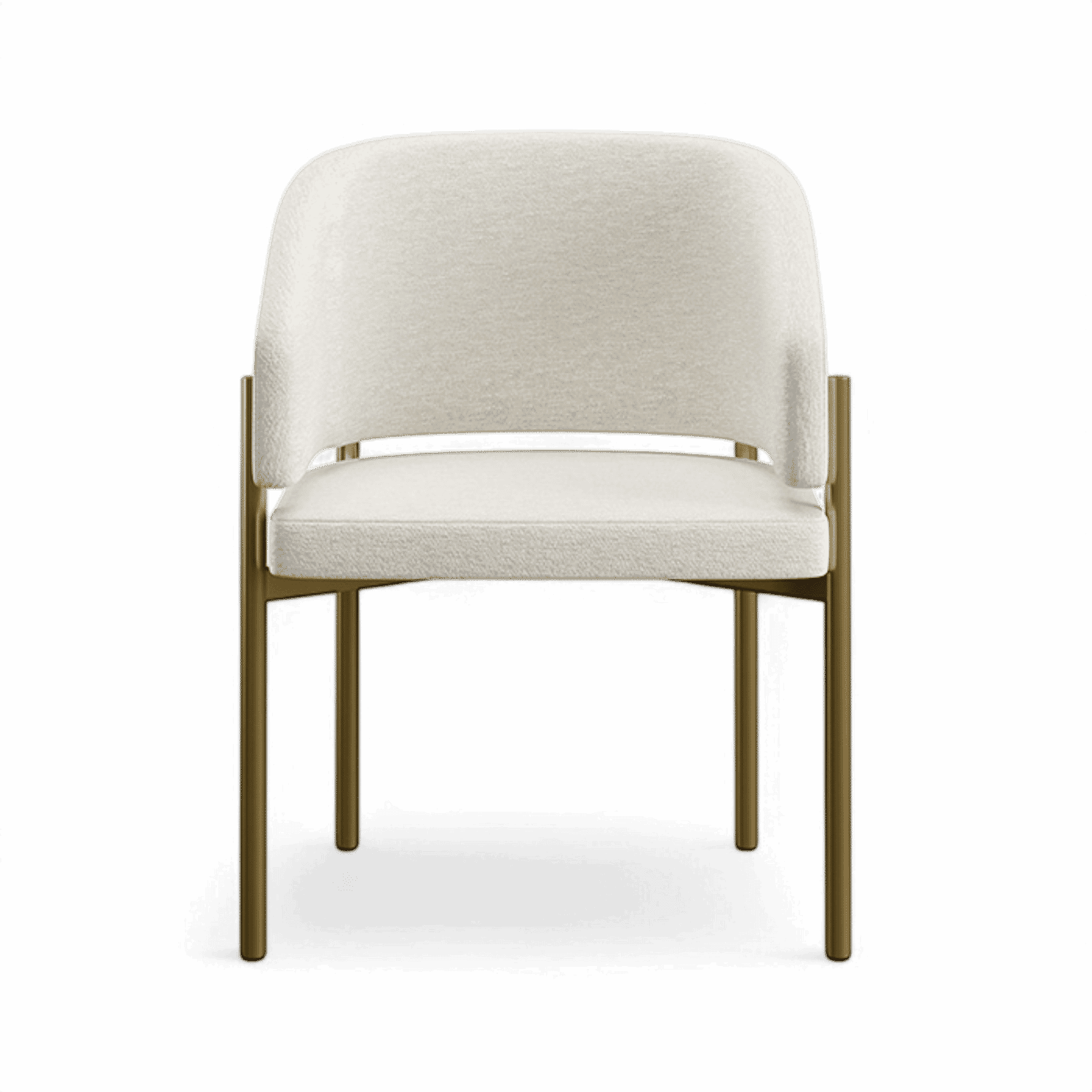 Upholstery: Off White Linen | Frame: Metal | Legs: Brushed Brass | Foam Cushion