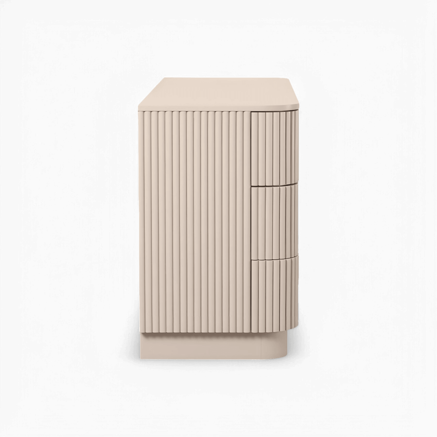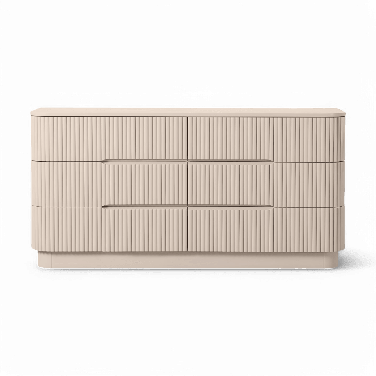 The vertical slat wood detailing on the sides and drawer fronts lends a classic yet contemporary appeal, offering texture and visual interest. With its thoughtful craftsmanship and versatile aesthetic, the Oxford Dresser Alabaster is both a stylish and practical addition to any bedroom décor.