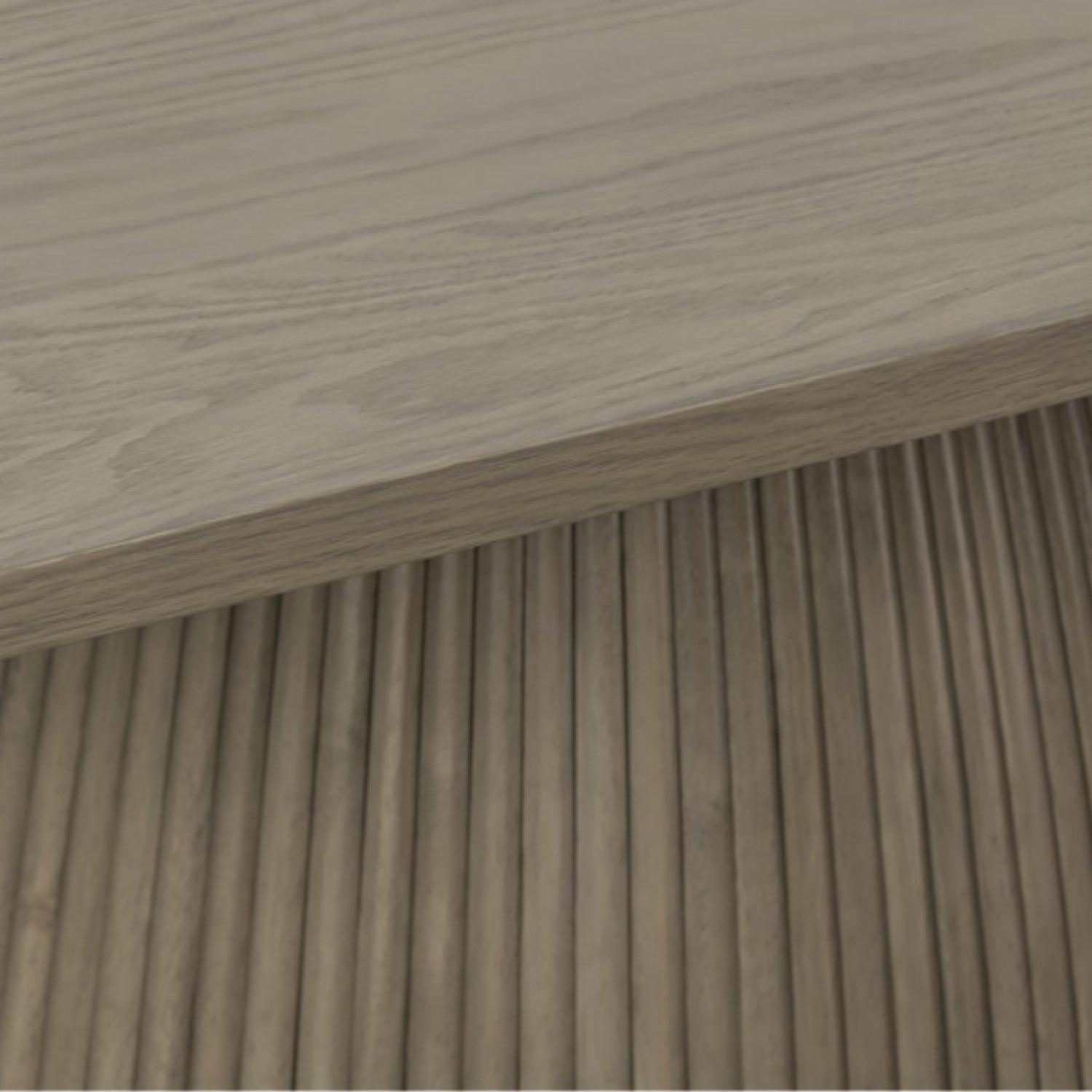 The Oxford Rectangular Dining Table Greige Oak is a sophisticated centerpiece for any dining space, combining timeless elegance with modern design. Its spacious rectangular tabletop features gently rounded edges, offering both style and a touch of softness to its bold silhouette. The base showcases an intriguing vertical wood slat design, adding depth and architectural interest to the table's profile.