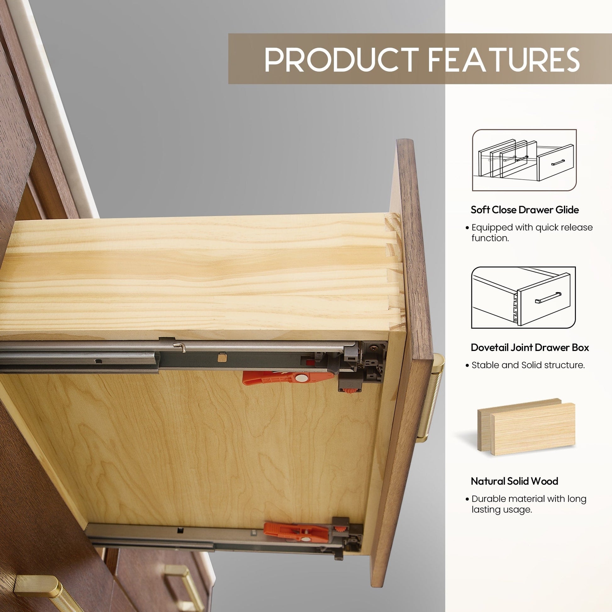 48 Inch - Six sturdy, soft-closing dovetail drawers feature built-in partitions for easy access to all your toiletries.