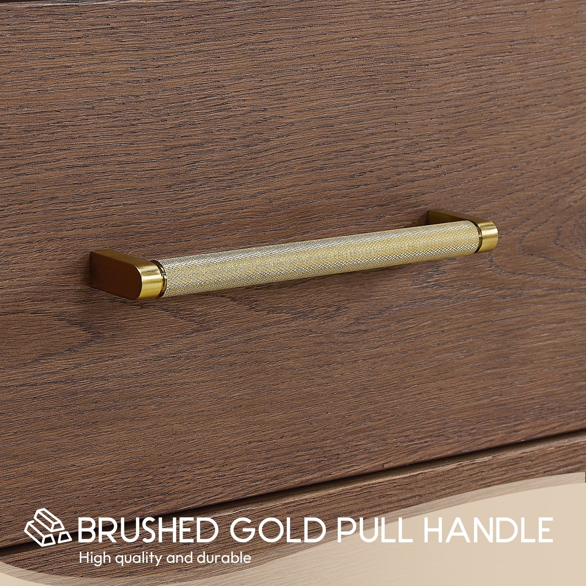 ● Hardware: Brushed Gold or Matte Black finish hardware lends a touch of elegant style and contrast.Rugged zinc alloy knurled handle adds a dash of classic style and stunning contrast against the textured wood.