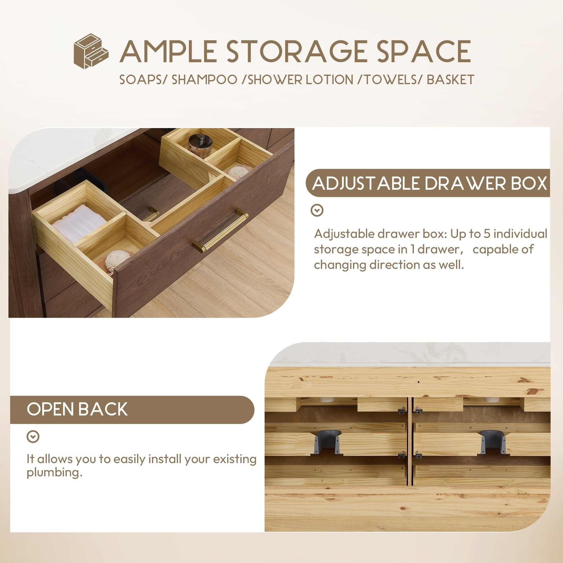 72 Inch - Six sturdy, soft-closing dovetail drawers feature built-in partitions for easy access to all your toiletries.