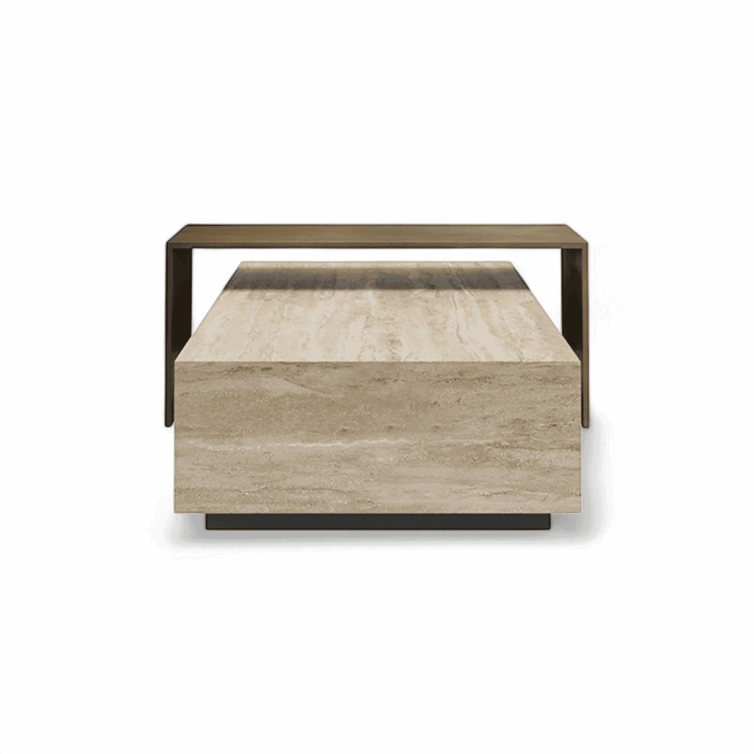 The Roma Coffee Table Travertine exudes modern elegance with its clean, rectangular silhouette and a luxurious travertine marbled finish. Its smooth surface creates a striking focal point, perfect for elevating any living space. The design is enhanced by the optional brass element that not only offers an elevated extra surface for functionality but also adds a touch of visual intrigue with its warm metallic sheen. Perfect for creating a chic and cohesive aesthetic, the Roma Coffee Table seamlessly blends form and function.