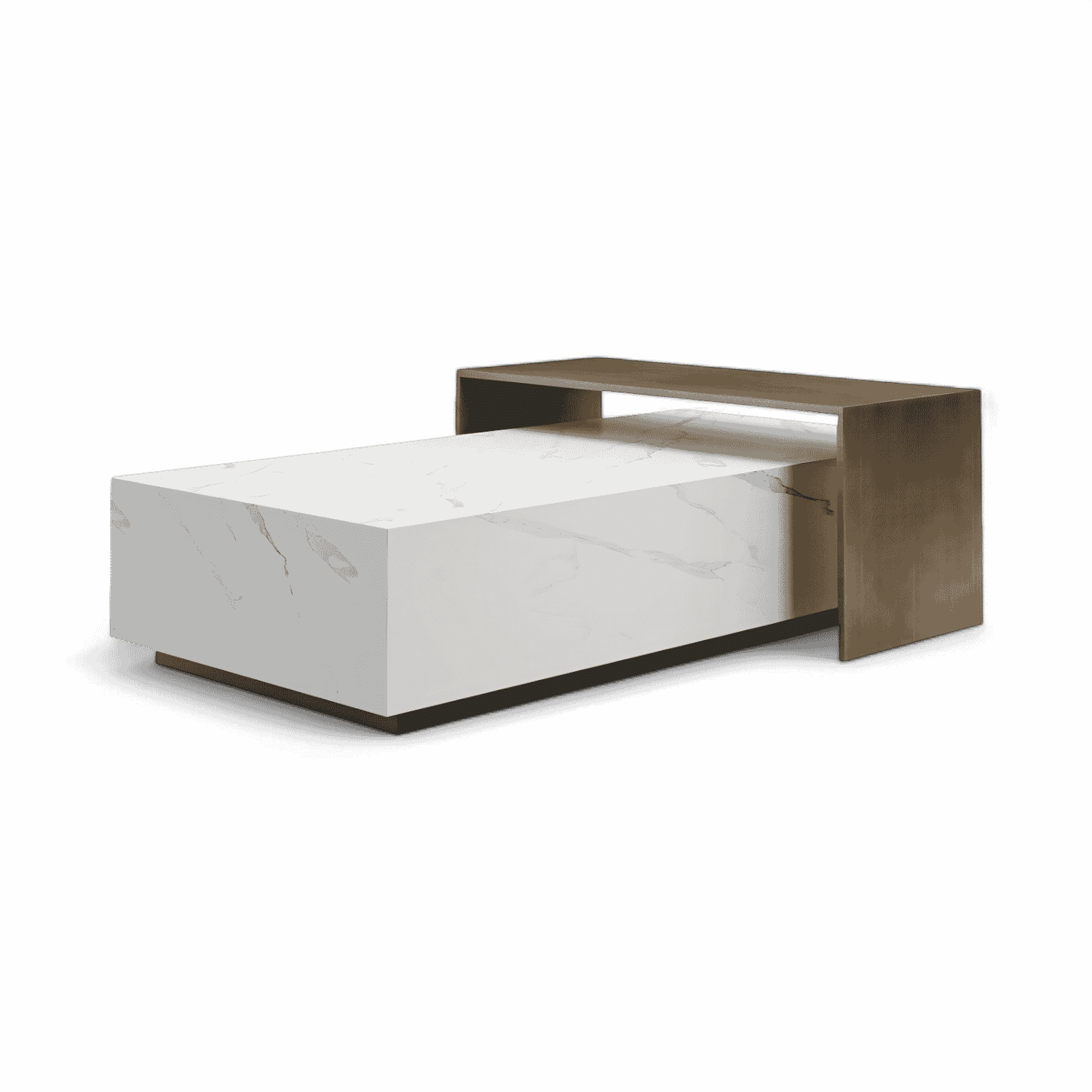 The Roma Coffee Table White exudes modern elegance with its clean, rectangular silhouette and a luxurious white marbled finish. Its smooth surface creates a striking focal point, perfect for elevating any living space. The design is enhanced by the optional brass element that not only offers an elevated extra surface for functionality but also adds a touch of visual intrigue with its warm metallic sheen. Perfect for creating a chic and cohesive aesthetic, the Roma Coffee Table seamlessly blends form and function.