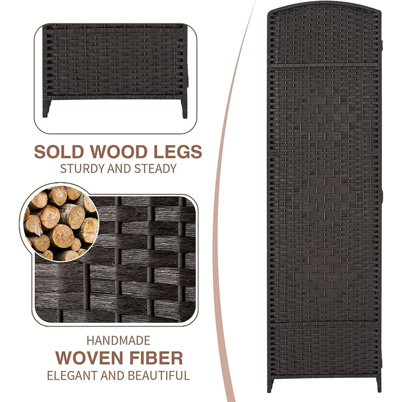 Room Divider 6 FT Tall Weave Fiber Freestanding Privacy Screen Folding Screen