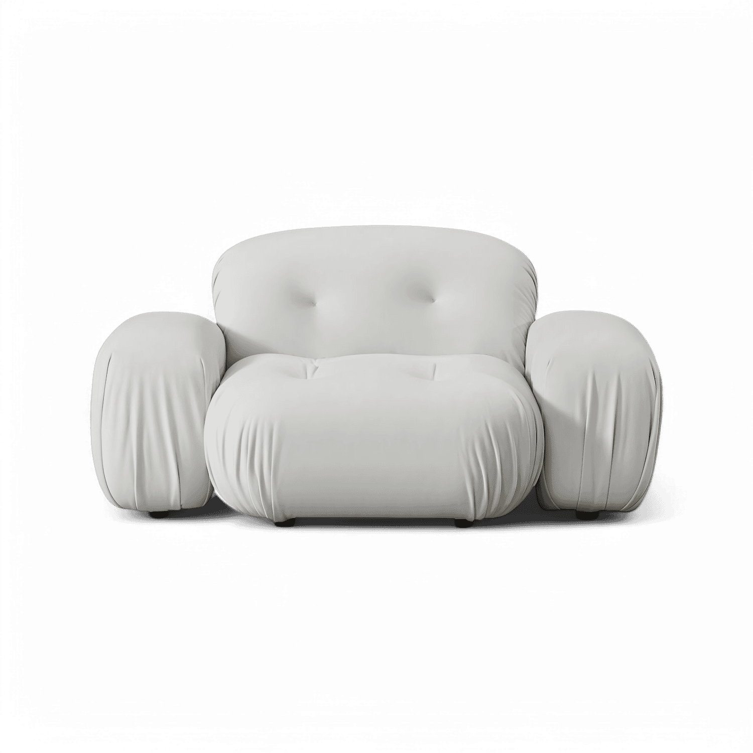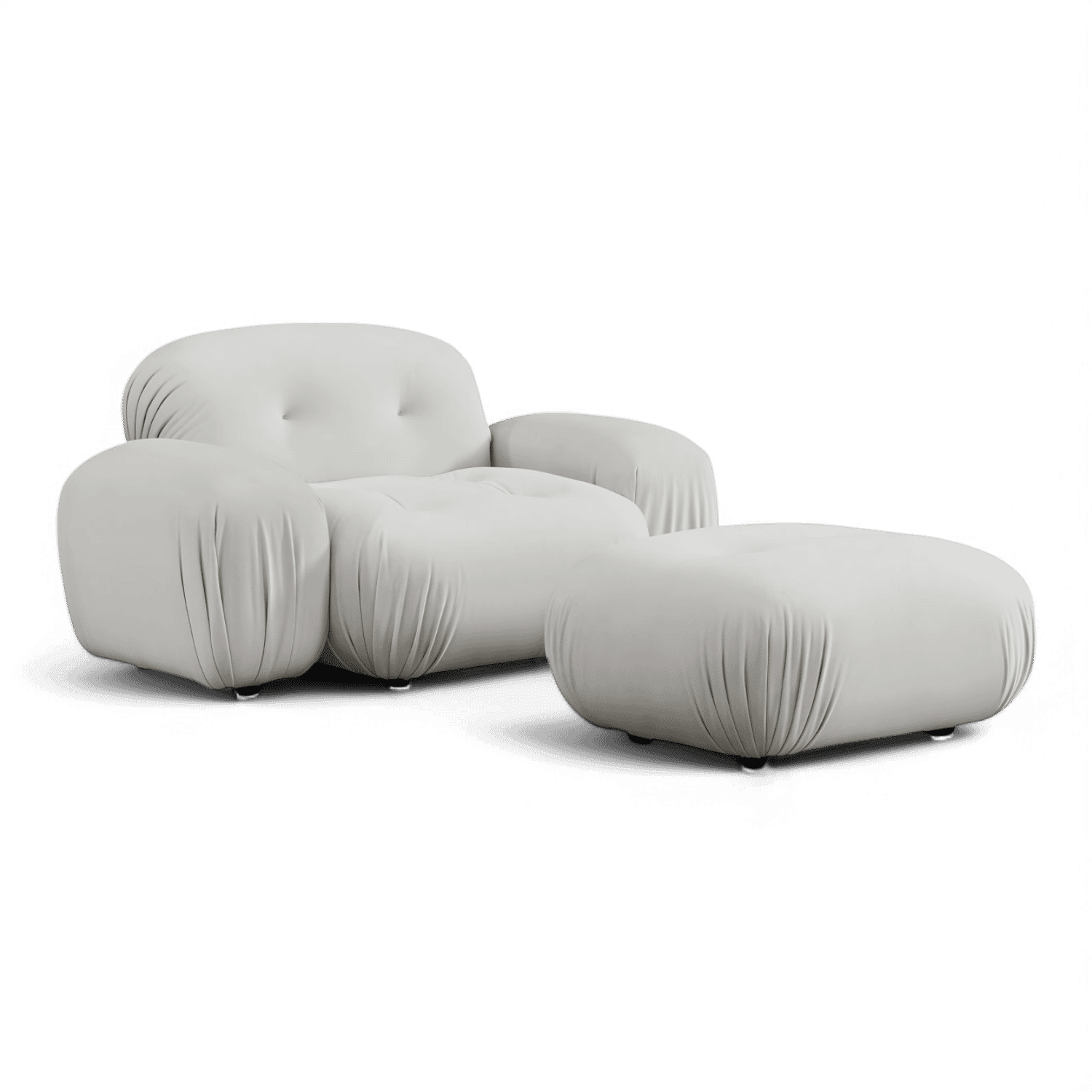 The Rune Lounge Chair in Off White Velvet is a perfect blend of comfort and elegance, designed to elevate any living space. Upholstered in luxurious off-white velvet fabric, this spacious lounge chair exudes sophistication. It features a generously plush seat and backrest, ensuring maximum comfort, while its padded, rounded arms provide additional coziness. The tufted button detailing on the seat and back adds a timeless charm, making it a statement piece for both modern and classic interiors. Whether you're relaxing with a book or entertaining guests, the Rune Lounge Chair promises style and relaxation in one stunning package.