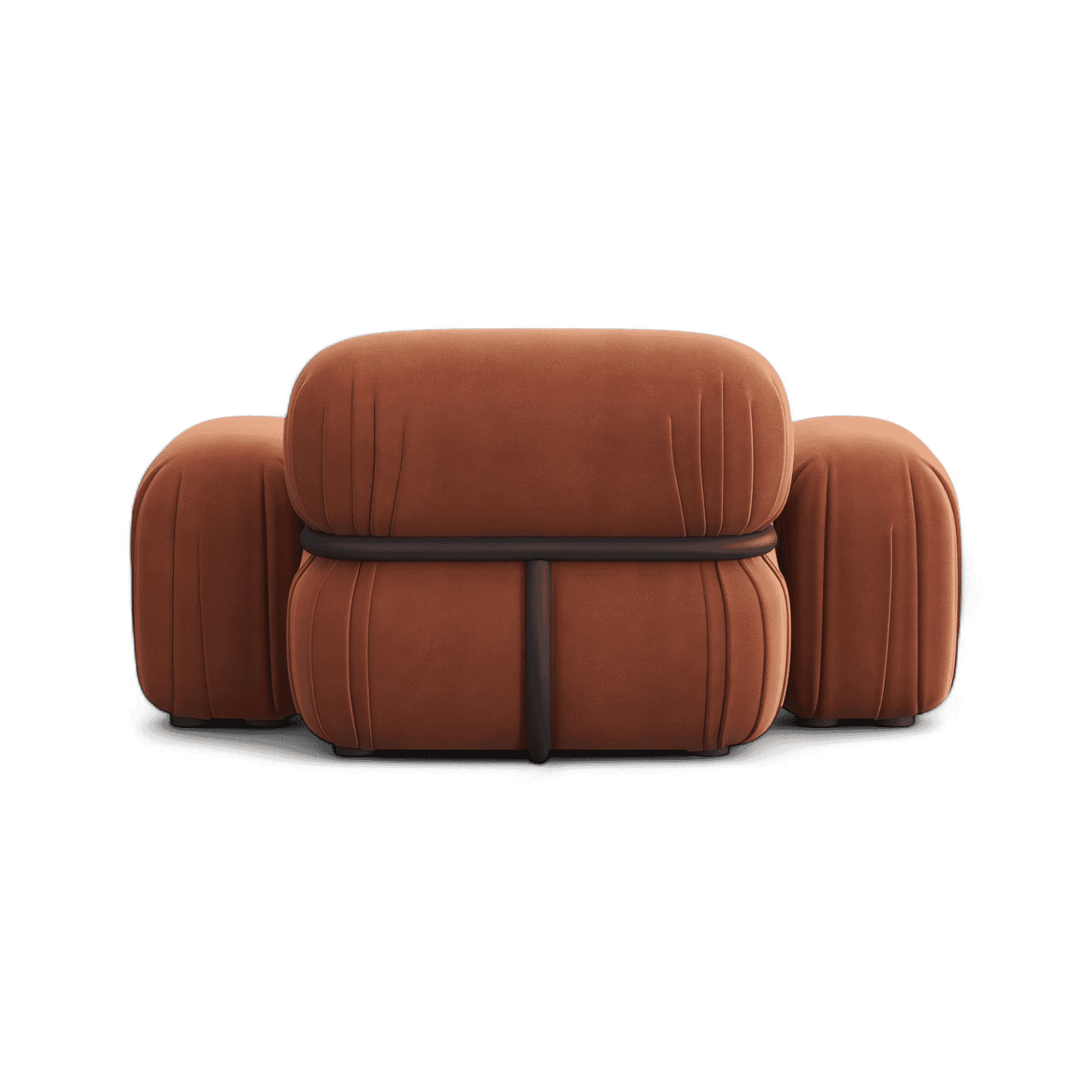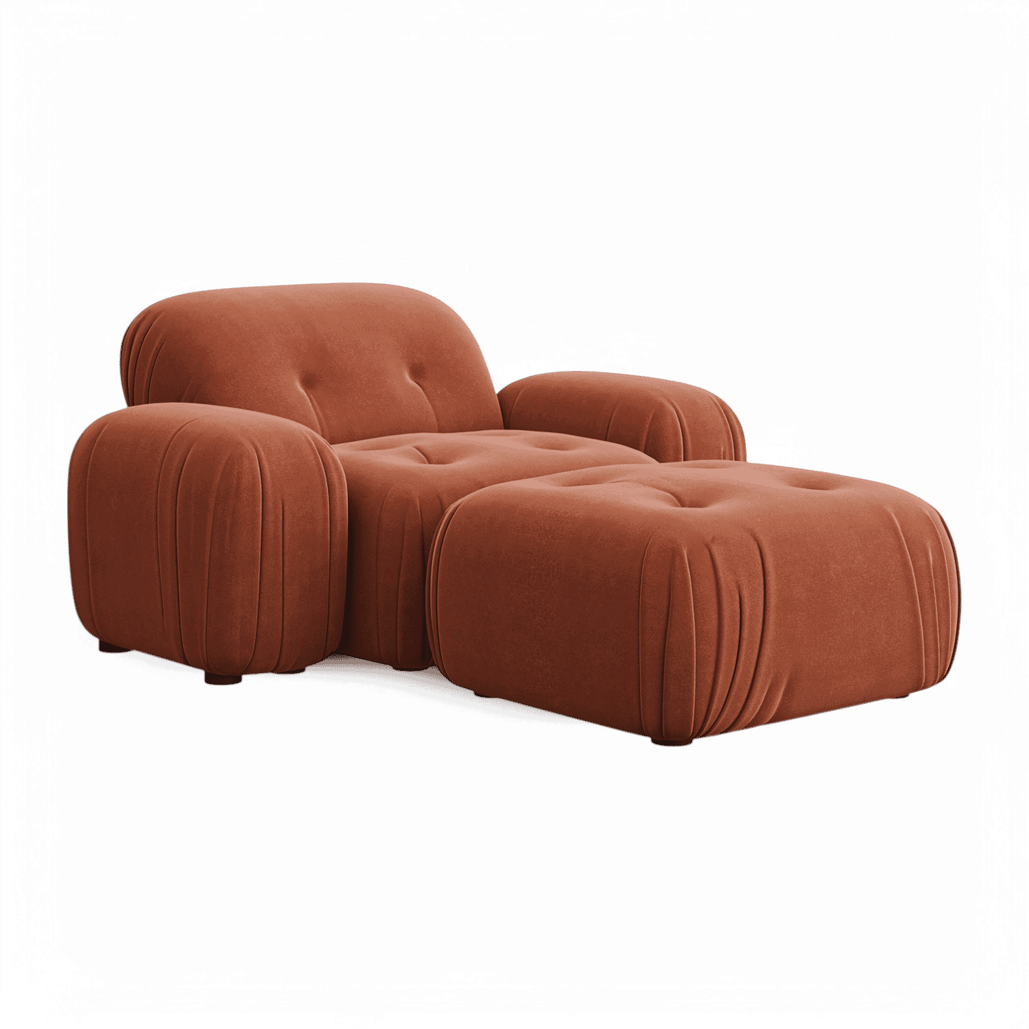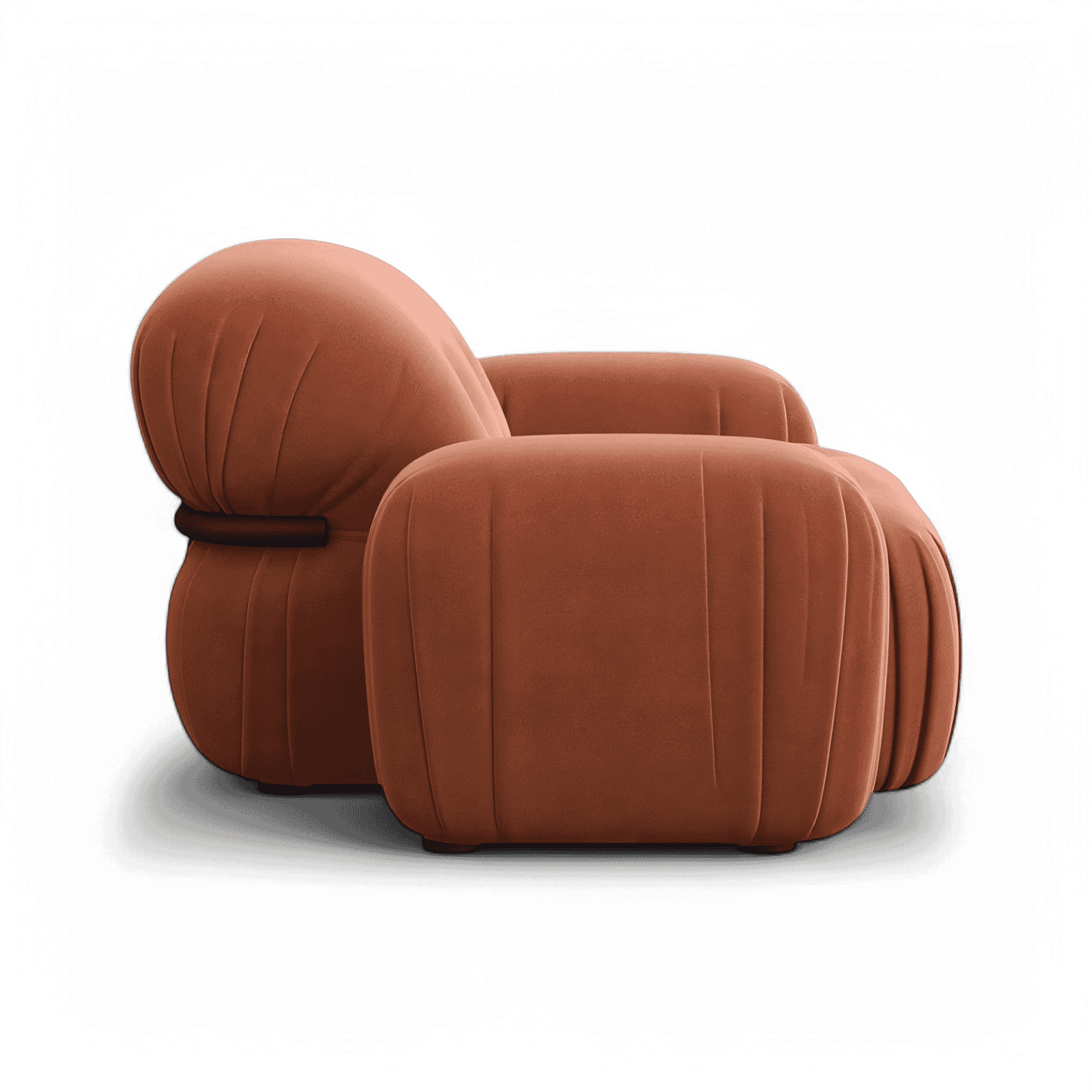 The Rune Lounge Chair in Terracotta Velvet is a perfect blend of comfort and elegance, designed to elevate any living space. Upholstered in luxurious terracotta velvet fabric, this spacious lounge chair exudes sophistication. It features a generously plush seat and backrest, ensuring maximum comfort, while its padded, rounded arms provide additional coziness. The tufted button detailing on the seat and back adds a timeless charm, making it a statement piece for both modern and classic interiors. Whether you're relaxing with a book or entertaining guests, the Rune Lounge Chair promises style and relaxation in one stunning package.