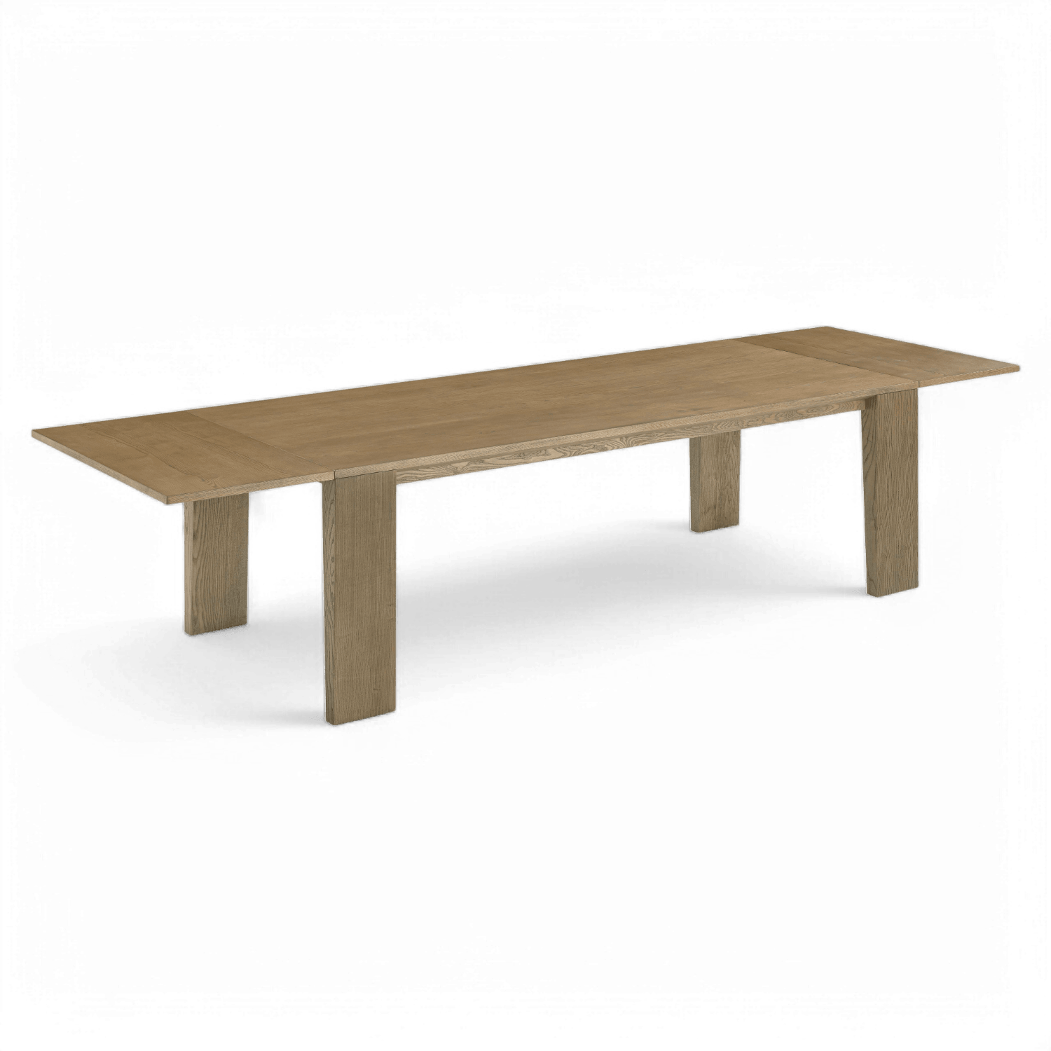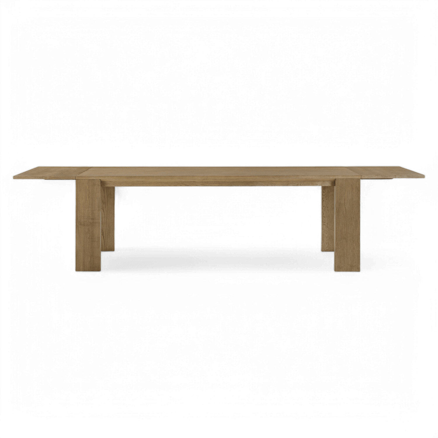 The Sable Extendable Dining Table boasts a natural ash finish and an extendable design, making it perfect for both everyday meals and large gatherings. Its versatile look complements a range of interiors.