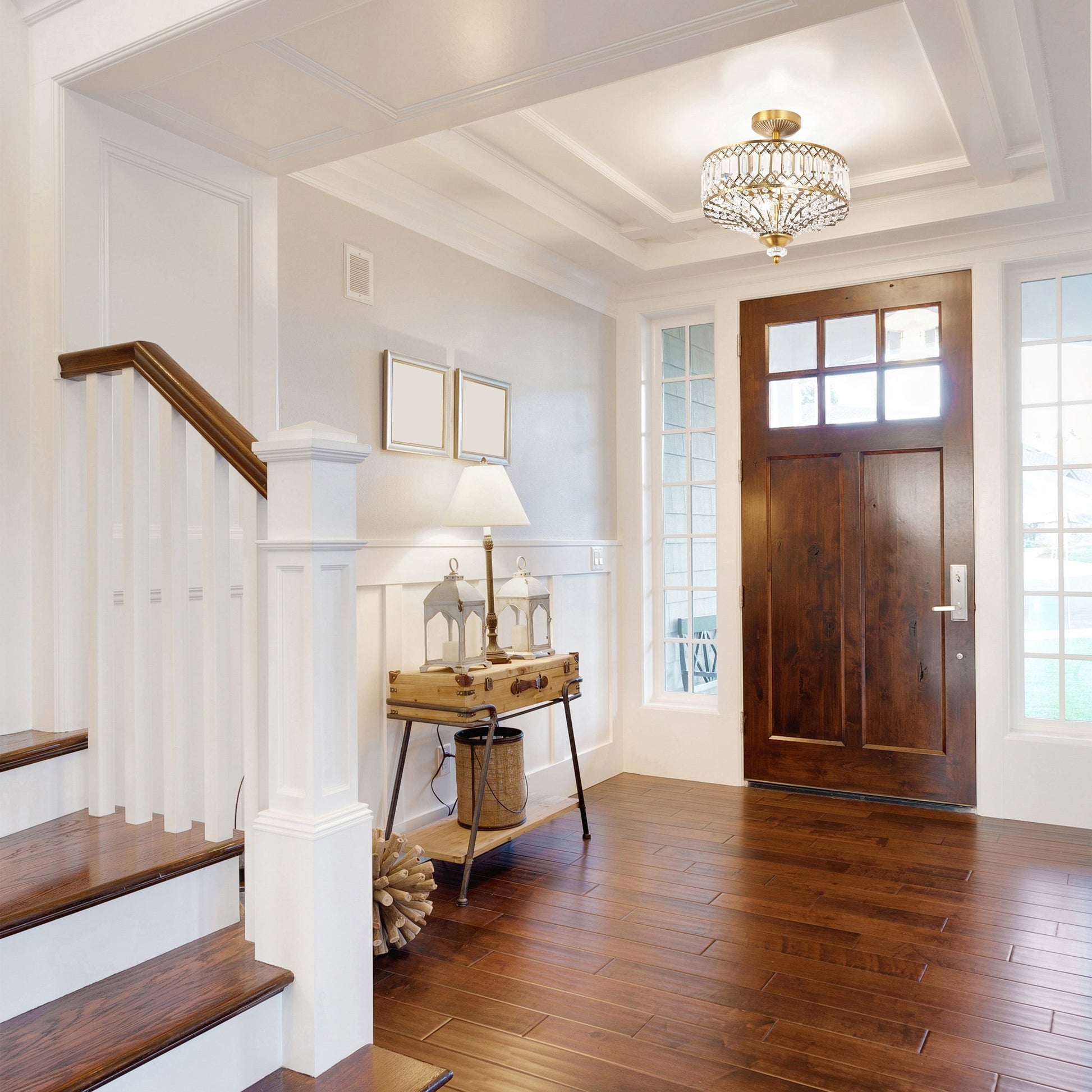Update your home décor with this exquisite semi-flush lighting fixture from Silver Orchid. The Furey Bronze/Gold Tiered Glass Semi-flush Lighting Fixture features 350-plus clear glass accent pieces and additional K-9 crystal accents that enhance its glamorous style. The oil -rubbed bronze tone or gold-finish details and classic design make this fixture a sophisticated addition to your home.