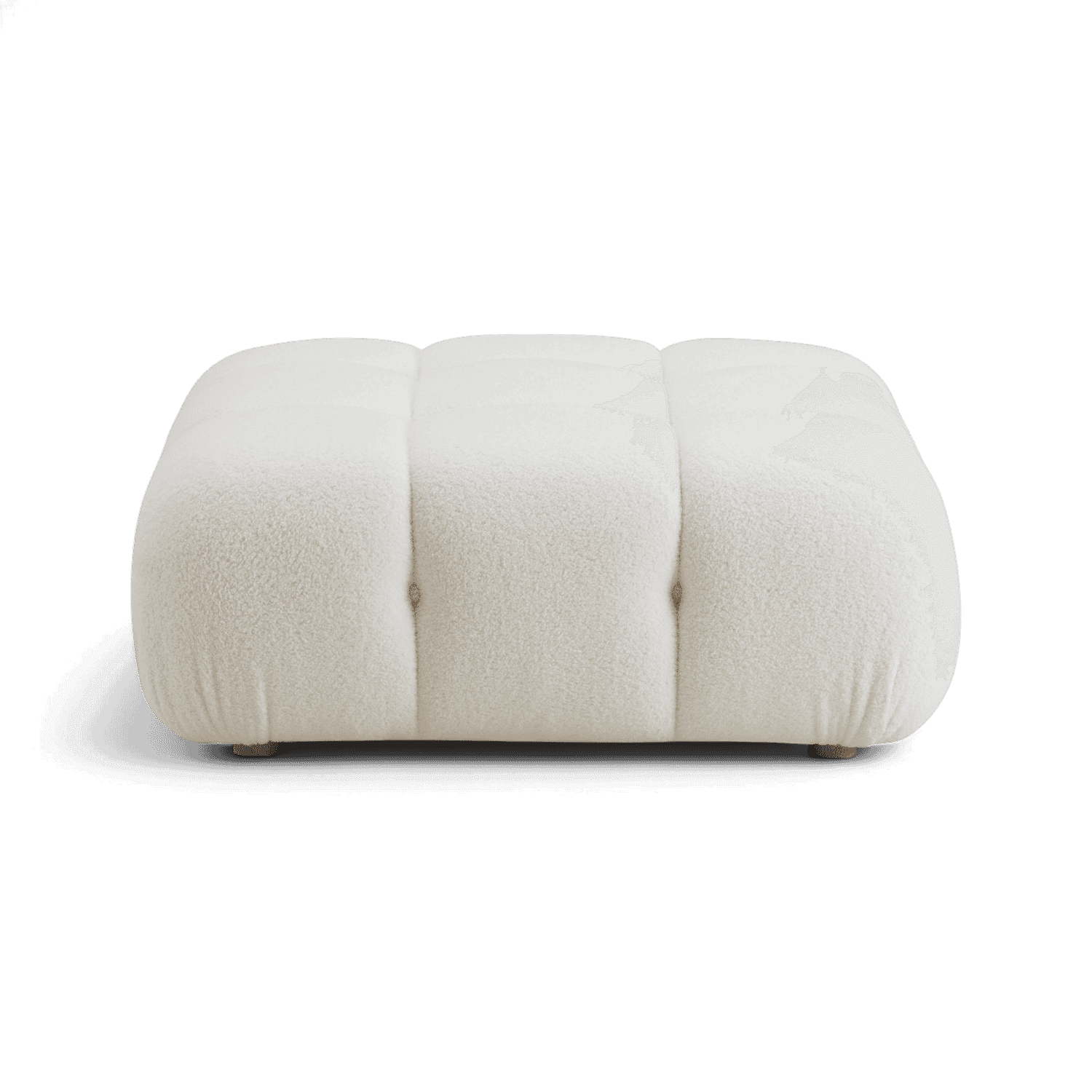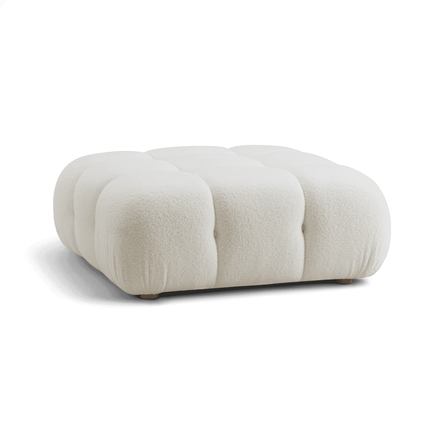 The Solace Modular Ottoman is designed for versatility and comfort, featuring vegan shearling upholstery and a modular design that can adapt to your space.