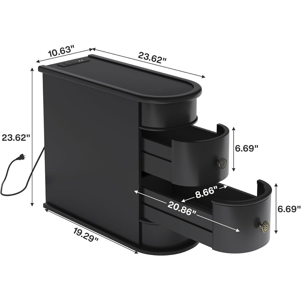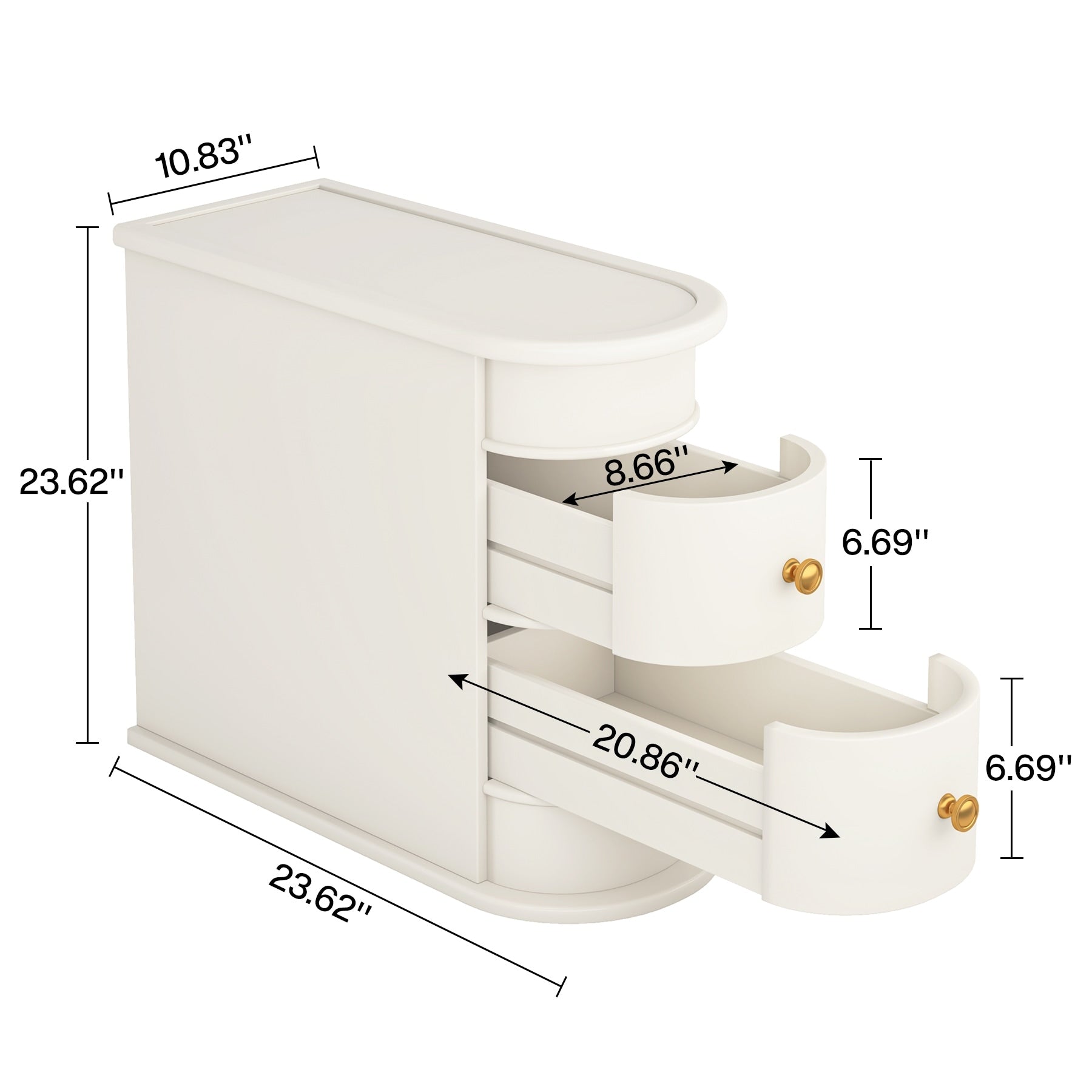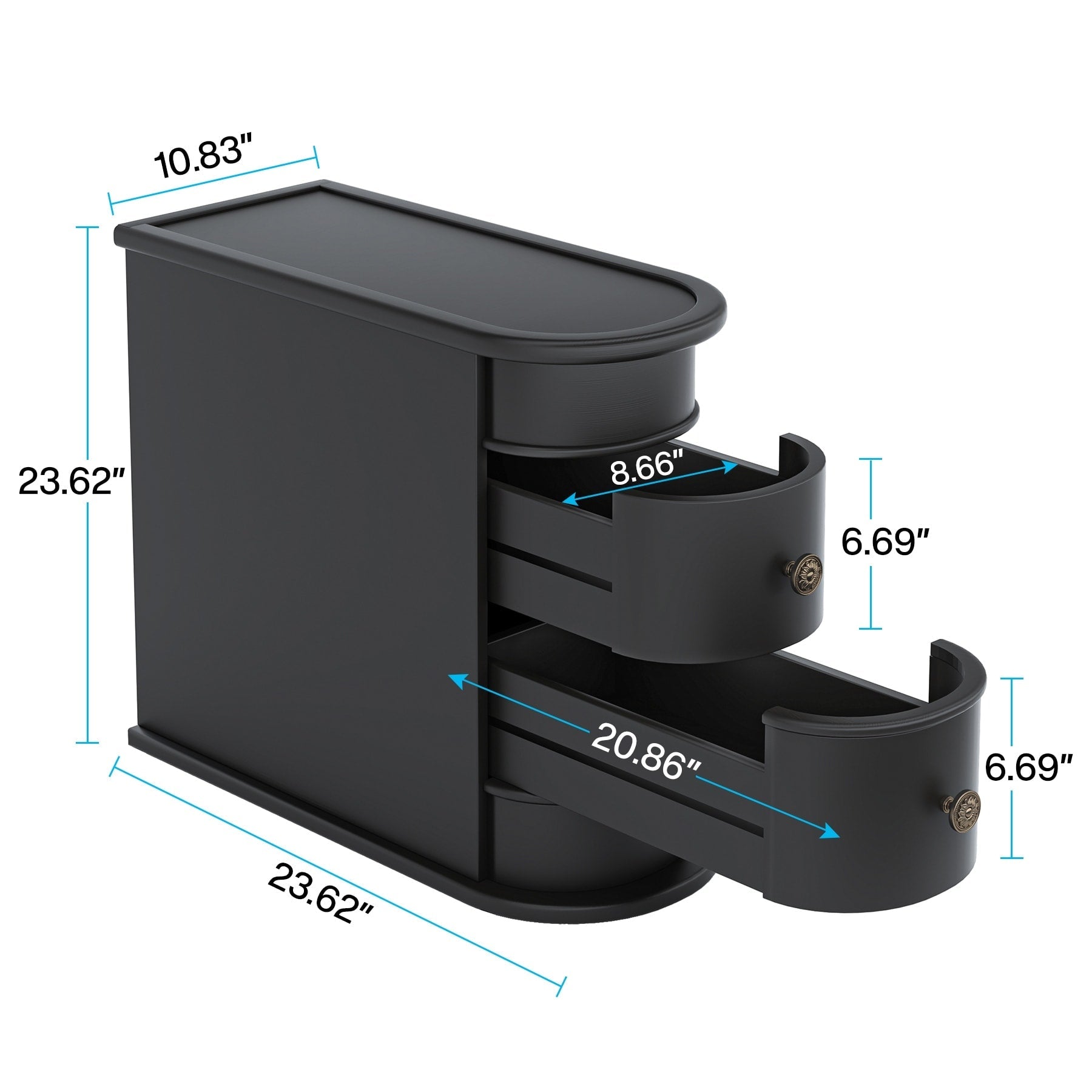 Solid Wood Chairside End Table, Two-Drawer Narrow Side Table Slim