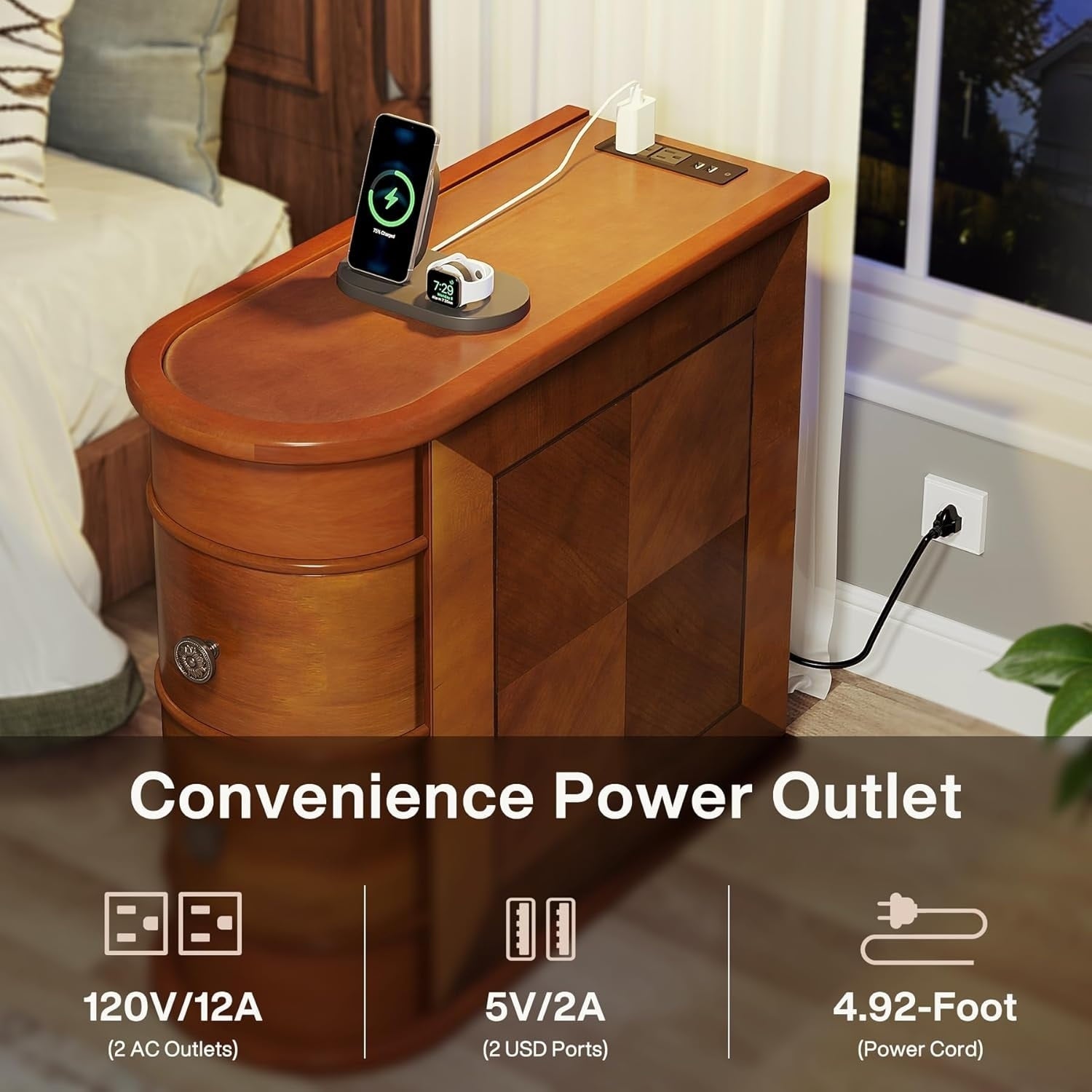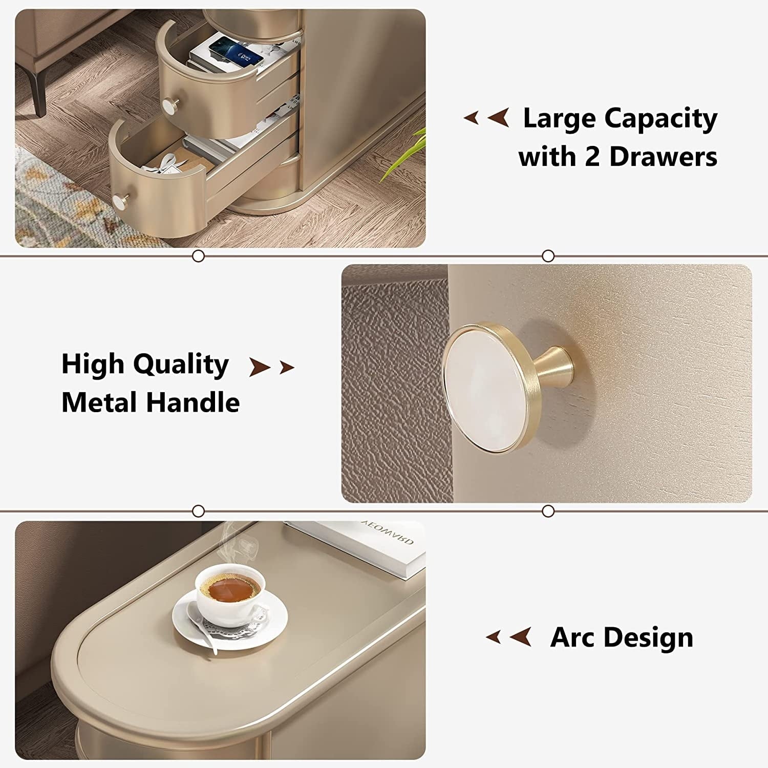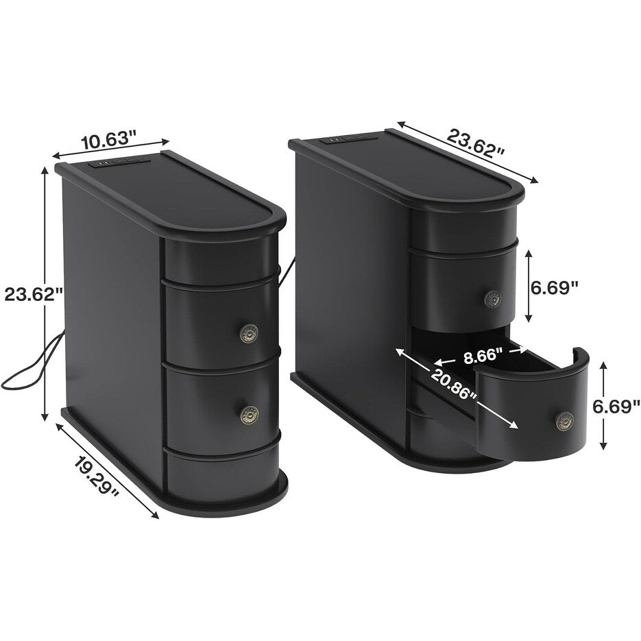 Solid Wood Chairside End Table, Two-Drawer Narrow Side Table Slim