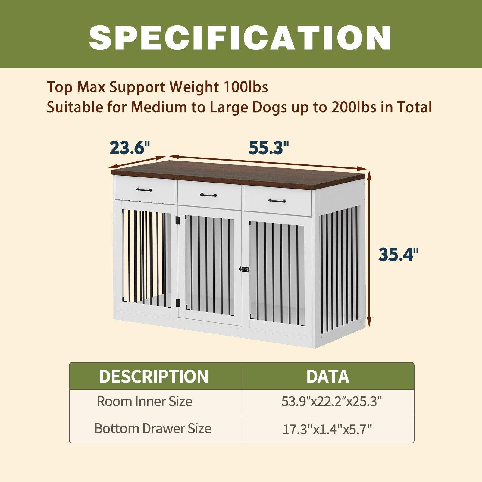 Stylish Wooden Dog Crate Furniture with Storage, 3 Drawers