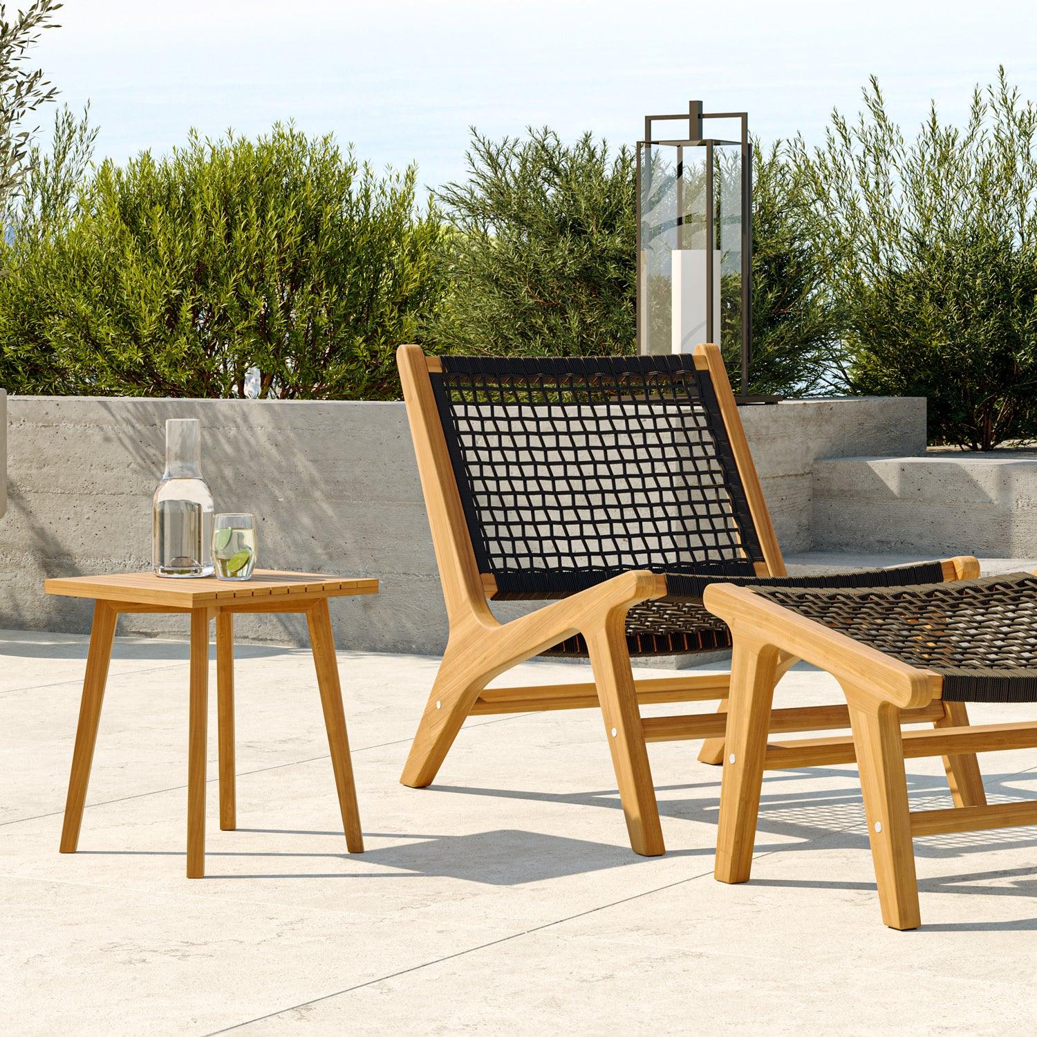 Complete your stylish backyard setup with our Tahiti Outdoor Side Table, made from solid acacia wood. It complements our Tahiti Outdoor Lounge Chair and Ottoman, and gives you the perfect spot to rest a book, a drink, or any other essential accouterments for a day spent outside enjoying nature.