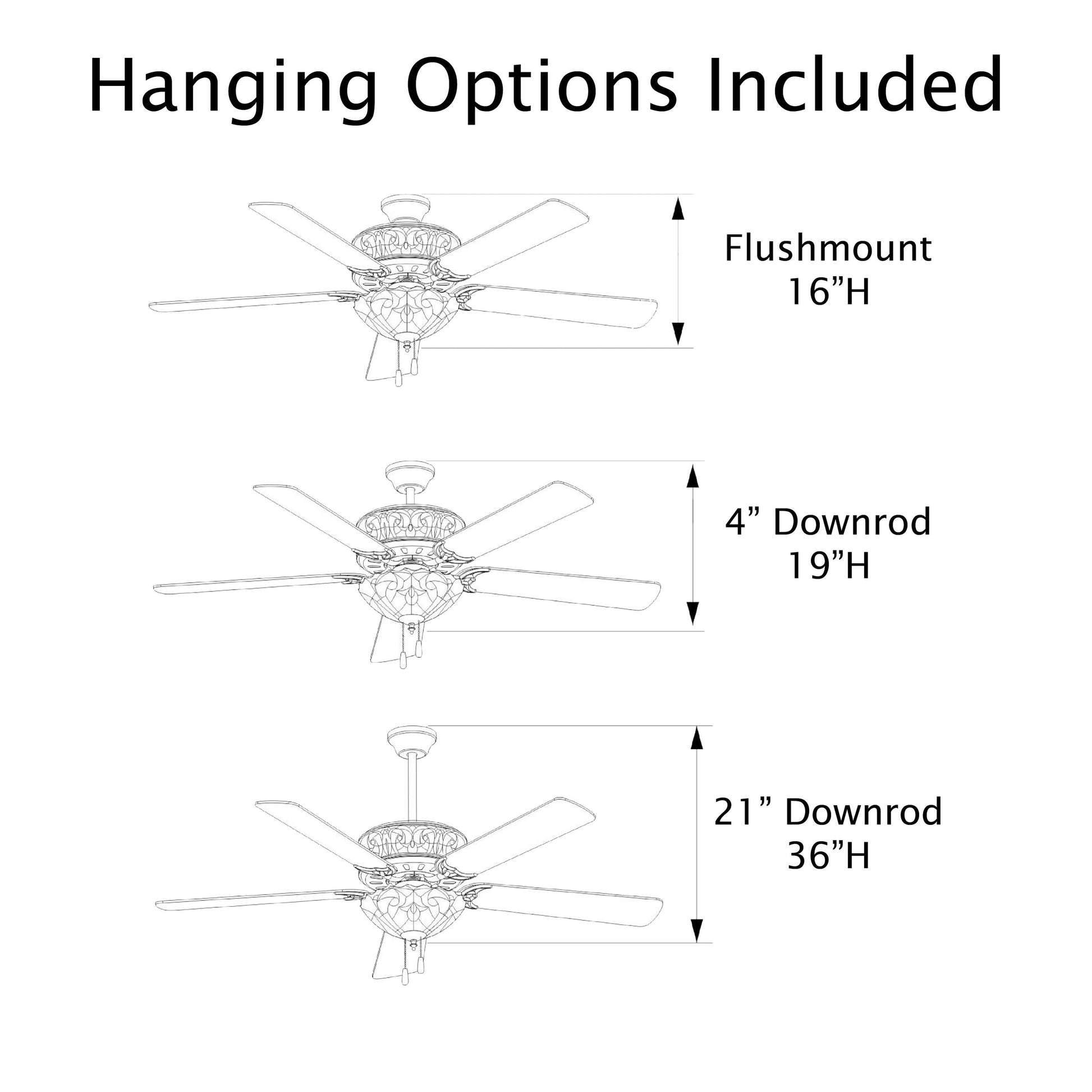- Pull chain or remote control (included) for easy control of light strength and blade speed