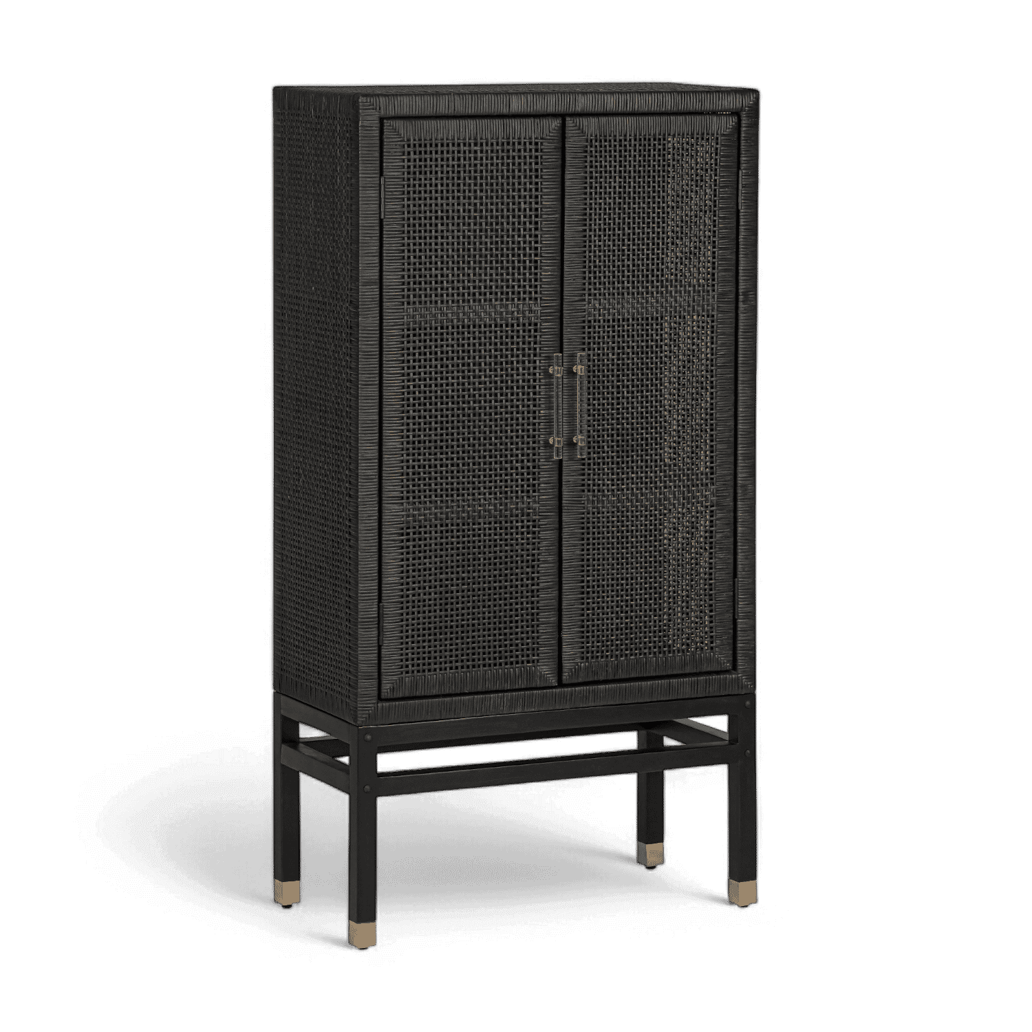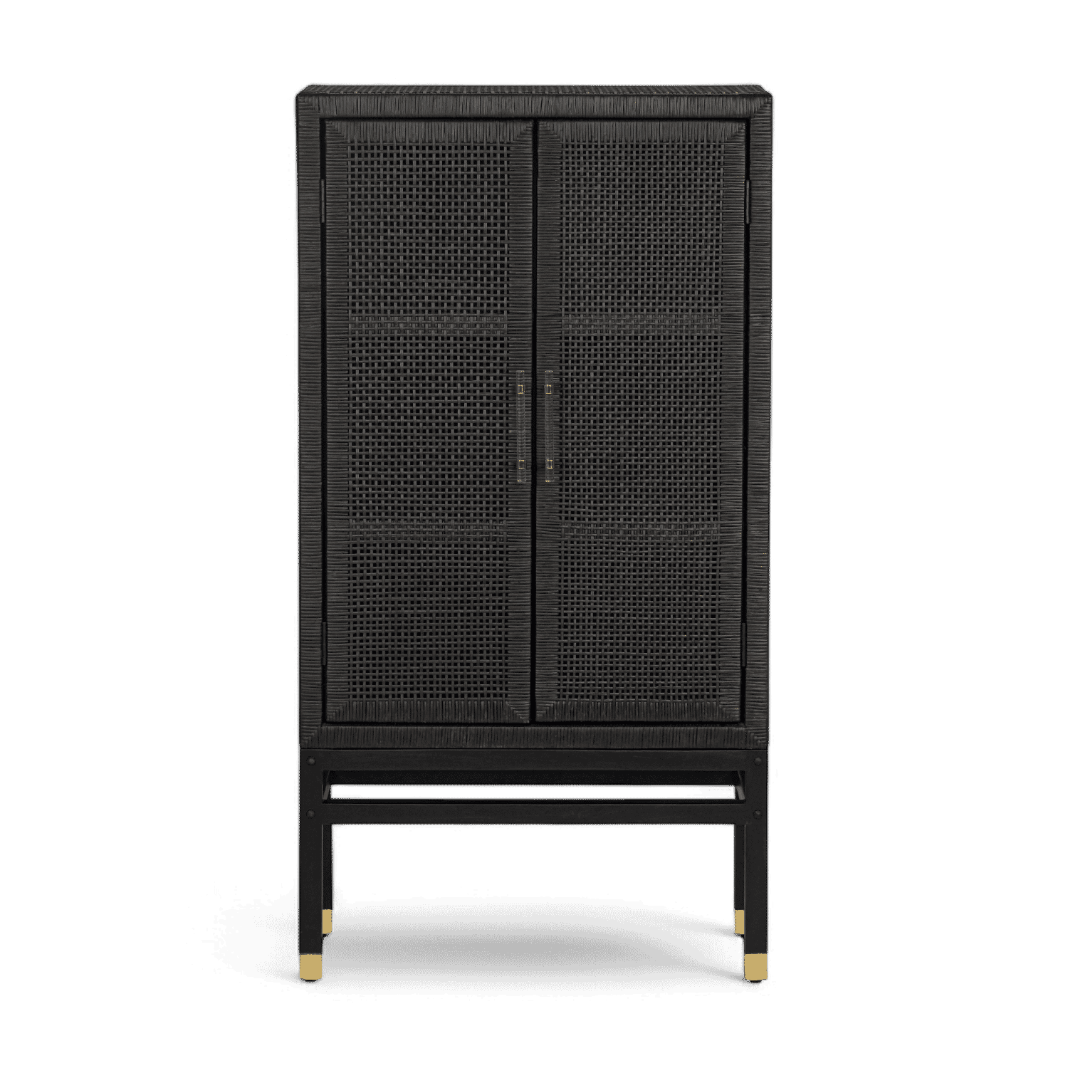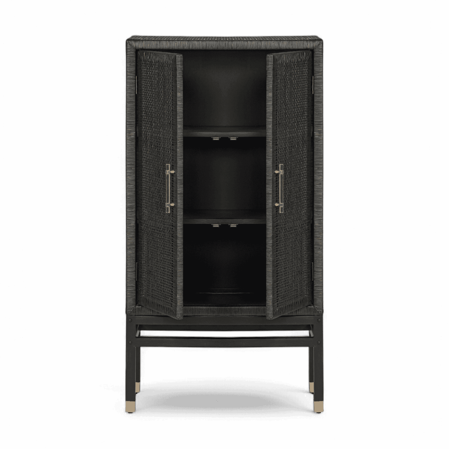 Bring texture and style to your home with the Vega Charcoal Woven Rattan Cabinet. Its unique design merges modern and rustic elements, creating a versatile piece that provides storage and aesthetic appeal.