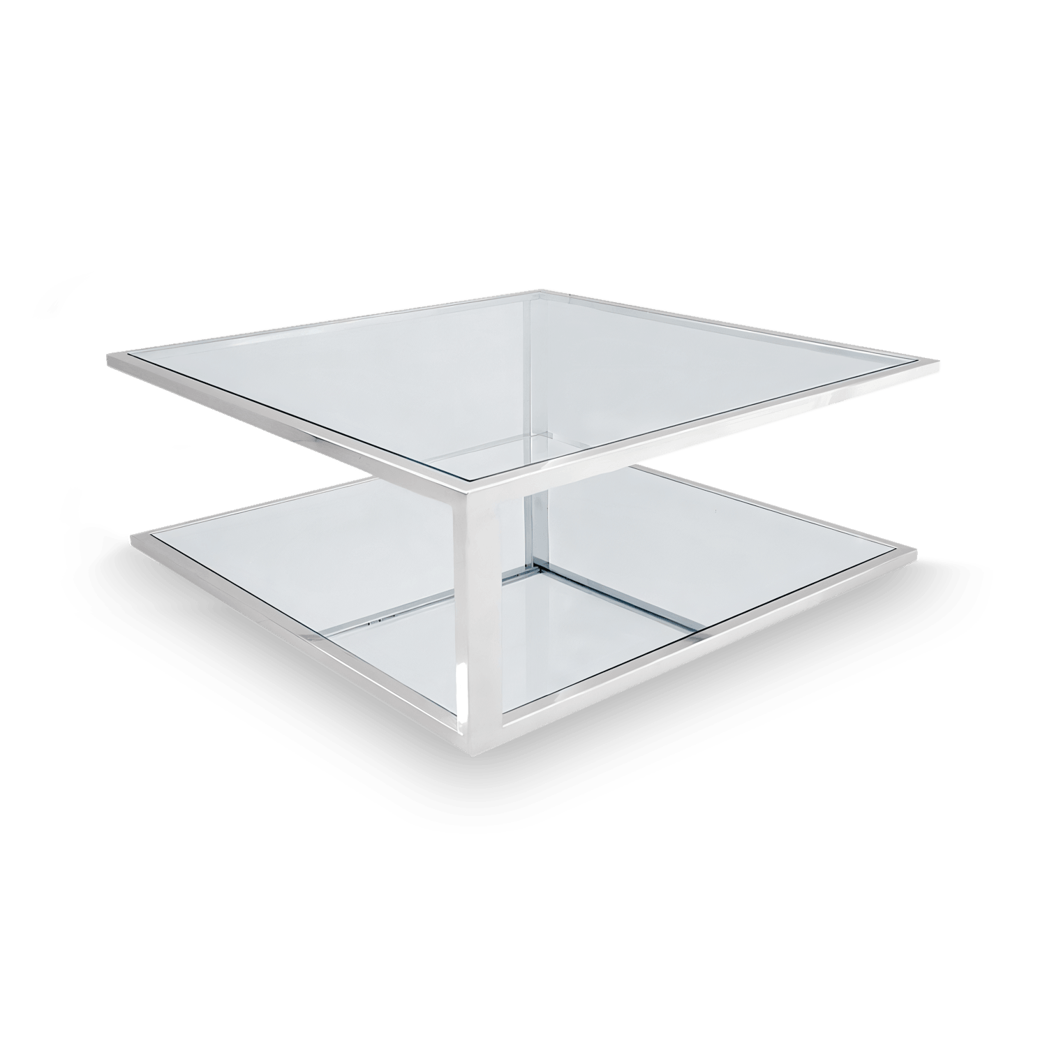 Guaranteed to add visual interest to any living room! This double shelved, low lying coffee table is cleverly executed to allow your items to be placed on top and below the surfaces. Its modern stainless steel frame makes as a study place to store your living room or office room belongings. The space between the two structures keep your area from appearing cluttered. The tempered clear glass surface enhances the surrounding atmosphere, making your room appear more spacious. The Walter Glass Modern Coffee Table functions in a living room, or even to help create a waiting area for guests. Pair with our New Tuco Contemporary Floor Lamp White to enhance your spacious home with its contrasting high-low qualities.