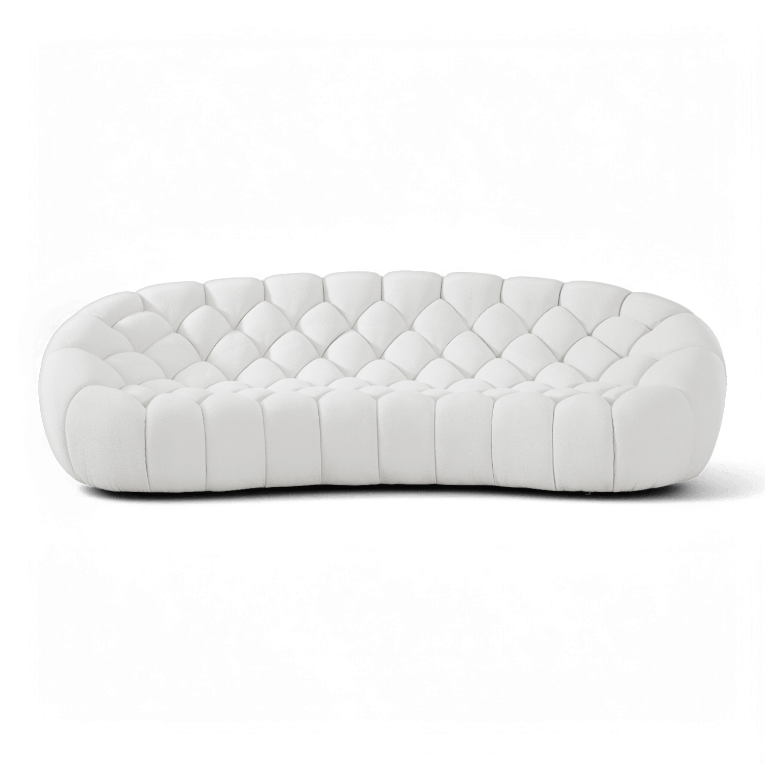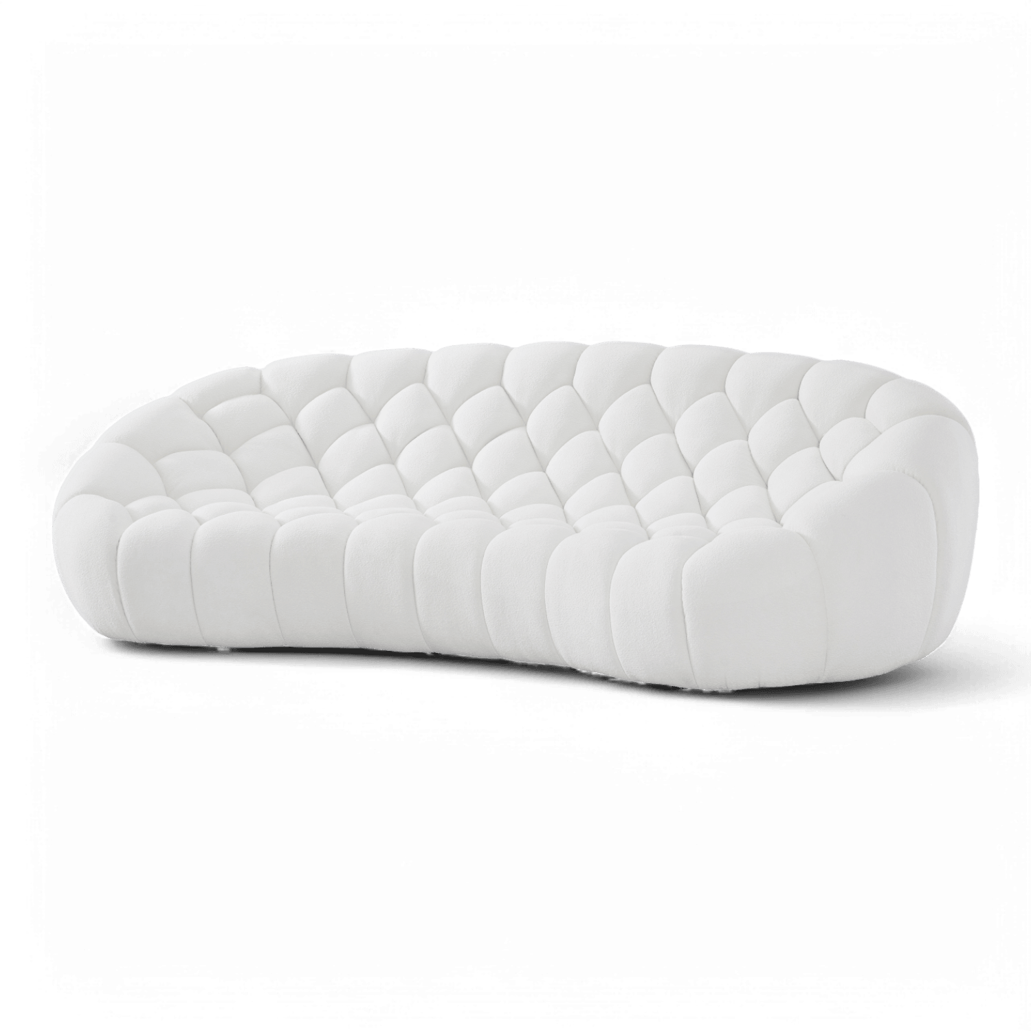 Elevate your living space with the Warby Three-Seater Sofa in White Bouclé. This sofa’s unique, curved silhouette and luxurious tufted texture create an inviting atmosphere. The soft, white bouclé fabric enhances the sofa’s cozy feel while maintaining an air of sophistication, making it perfect for both minimalistic and modern interiors. With a plush, cloud-like comfort and a design that makes a statement, the Warby sofa is an irresistible addition to any home.