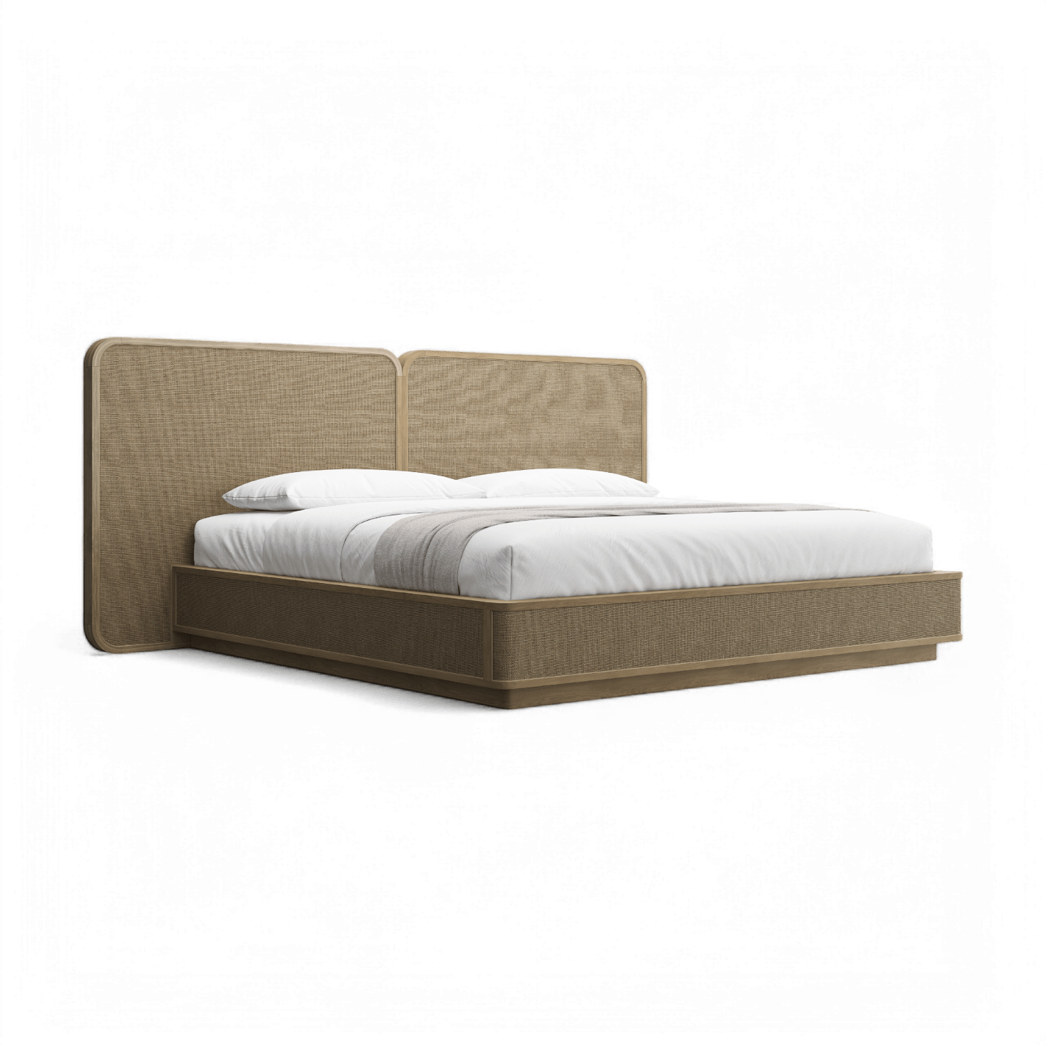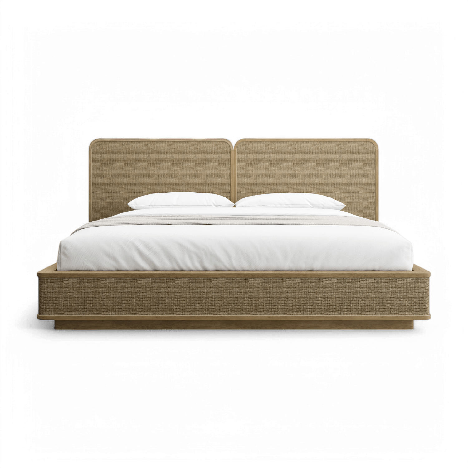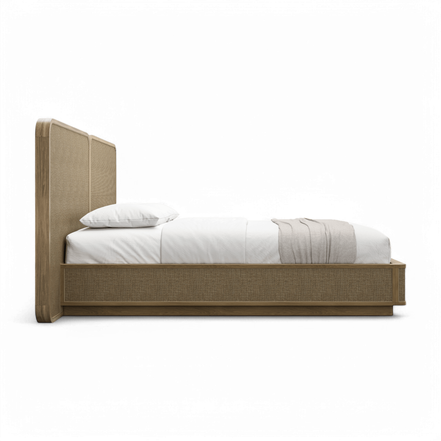 Top Finish: Greige Oak Veneer, Cane | Inner Frame Material: Rubberwood | Base Material: Rubberwood | Wood Slat Bed Foundation