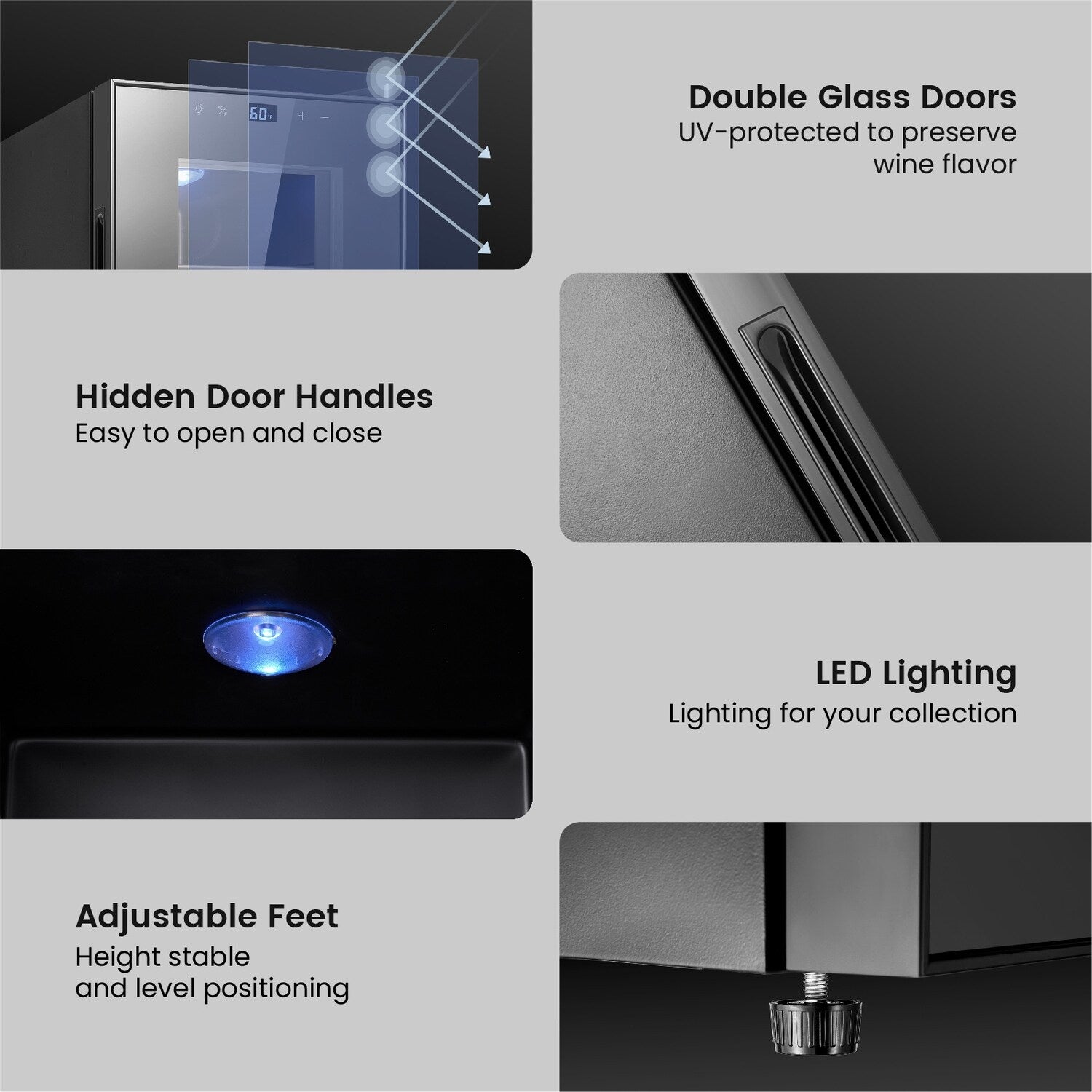 - Advanced Preservation: Equipped with an internal fan for even cooling distribution and humidity control, ensuring optimal wine preservation for enhanced flavors and aromas.