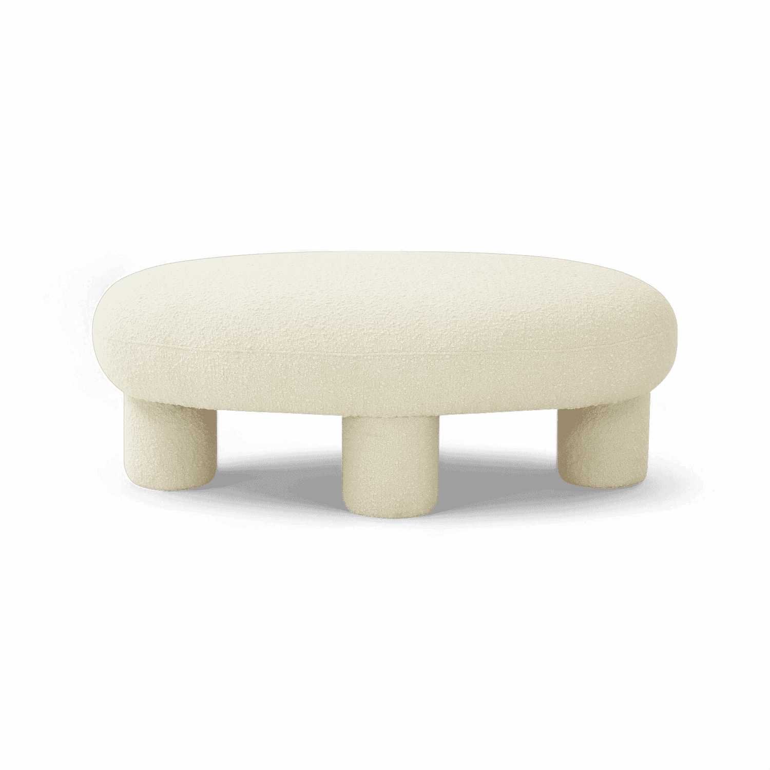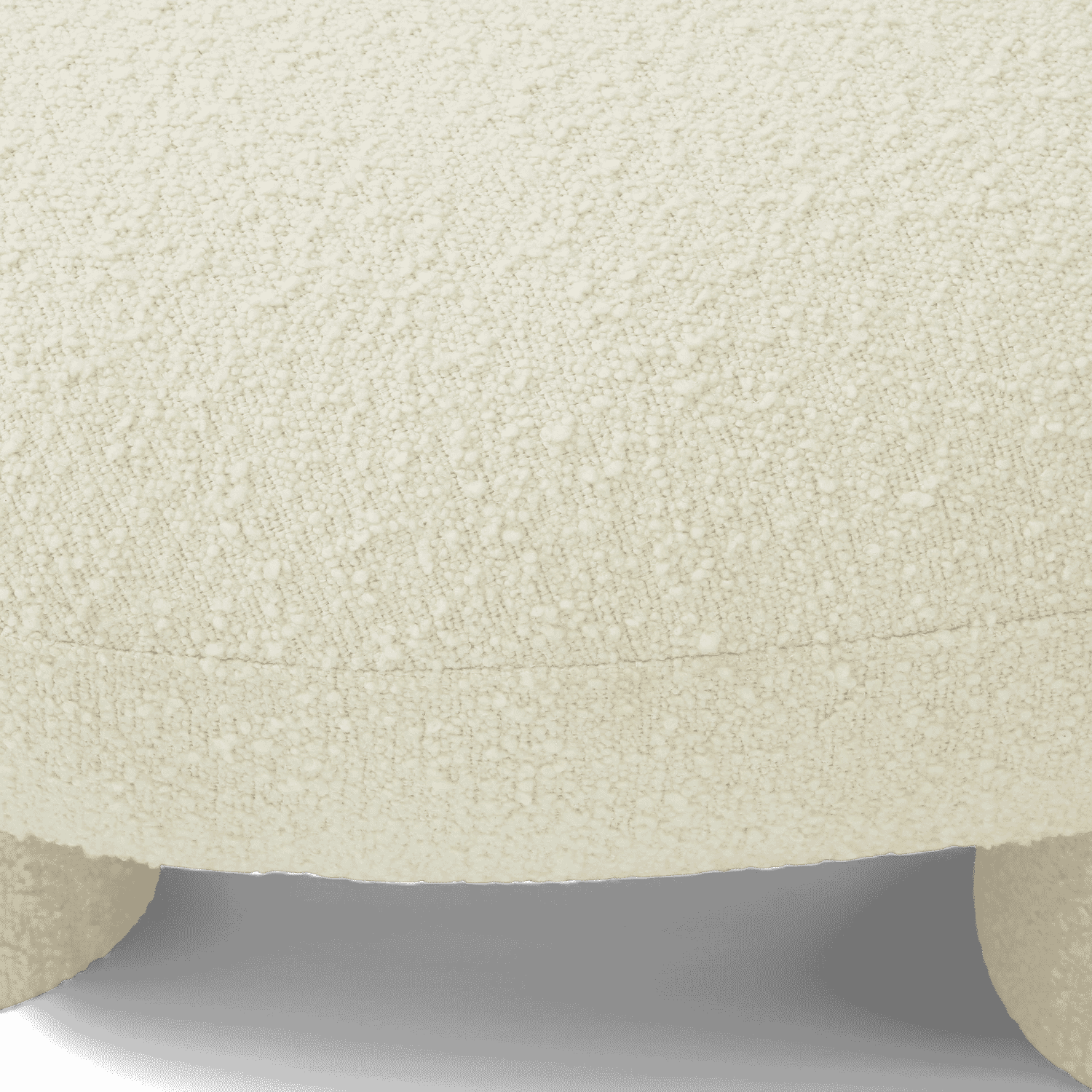 The Zest Boucle Ottoman makes a modern statement with its round shape and soft boucle fabric. Ideal as an accent piece or for functional seating in any contemporary setting.